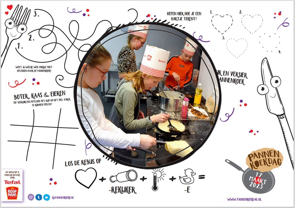Ook bij Uddel Samen hebben ze in samenwerking met de Rehobothschool deze dag meegedaan. Juf Thomassen heeft de aanmelding gedaan bij de organisatie en die stuurt dan een pakket met pannenkoekpannen, 10 pakken Koopmans pannekoekenmix, tafelkleden, servetten en koksmutsen.