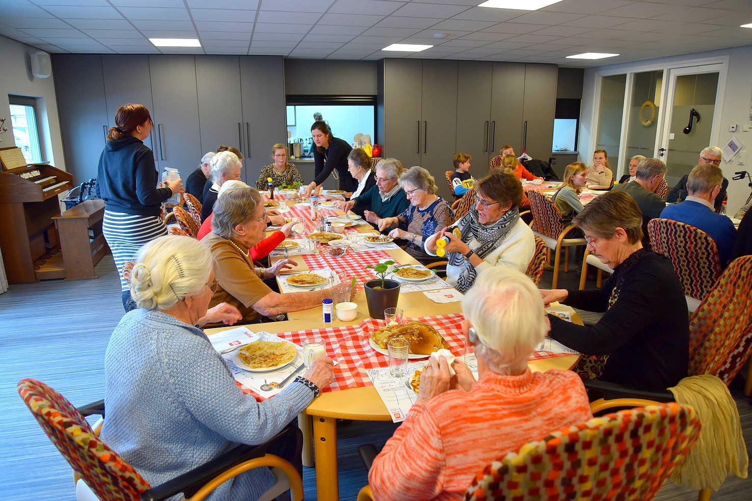 Dus gingen de leerlingen van de Rehobothschool vrijdagmorgen vol enthousiasme aan de slag in de Wilhelminahof om de lekkerste pannenkoeken te bakken voor de ouderen van Uddel. En lekker waren ze, je zag aan de gezichten dat er werd genoten van de pannenkoeken. Aan het einde was er dan ook een welverdiend applaus voor de pannenkoekenbakkers en baksters.