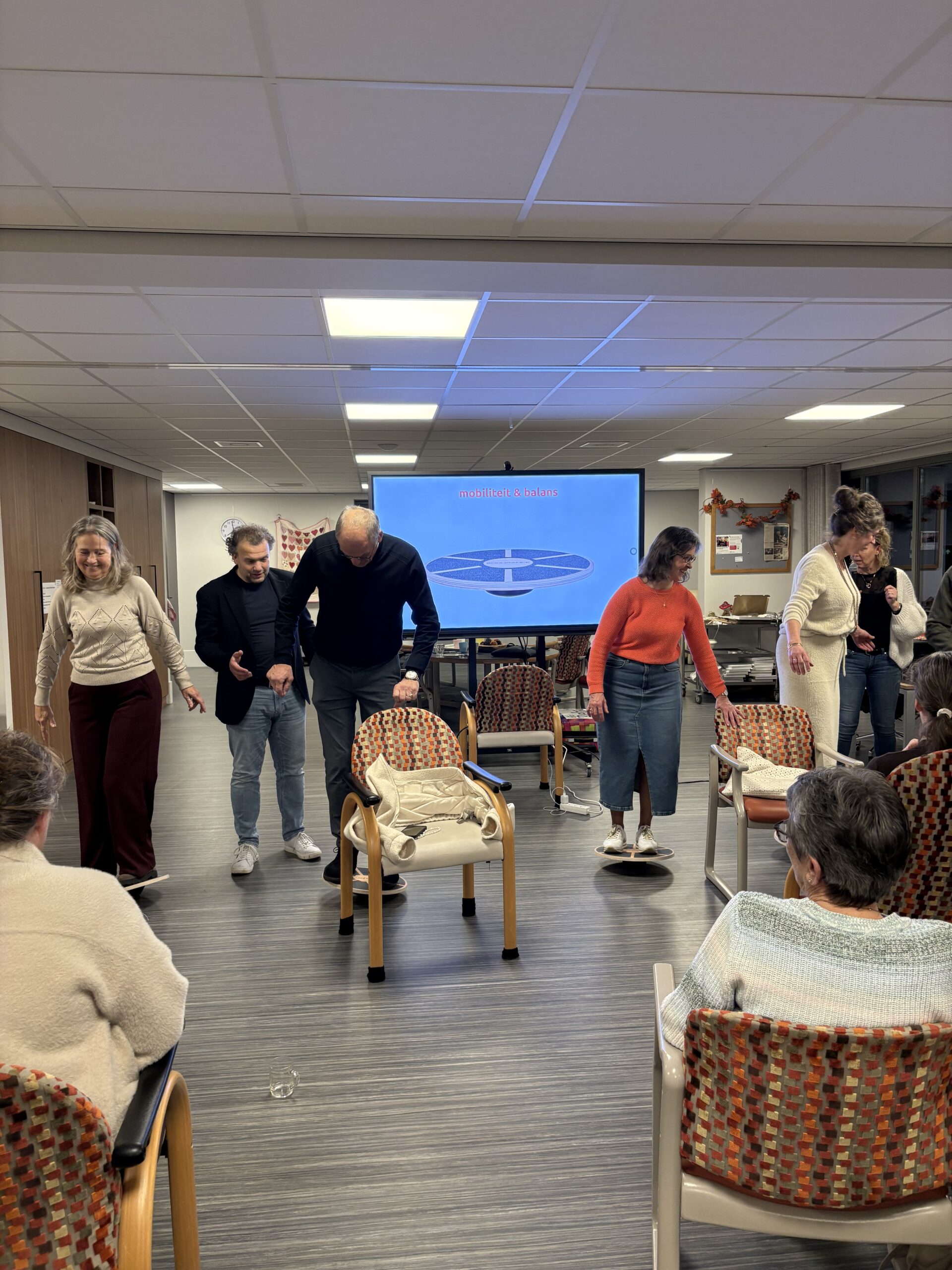 De aanwezigen ontdekten dat beweging niet alleen spieren traint maar ook je ‘breinapotheek’ activeert. Met simpele oefeningen die je morgen kunt toepassen word je sterker en stabieler. Je kunt weer dingen die je soms al heel lang niet meer kon. En dat geeft energie, dat maakt trots, blij en dankbaar.