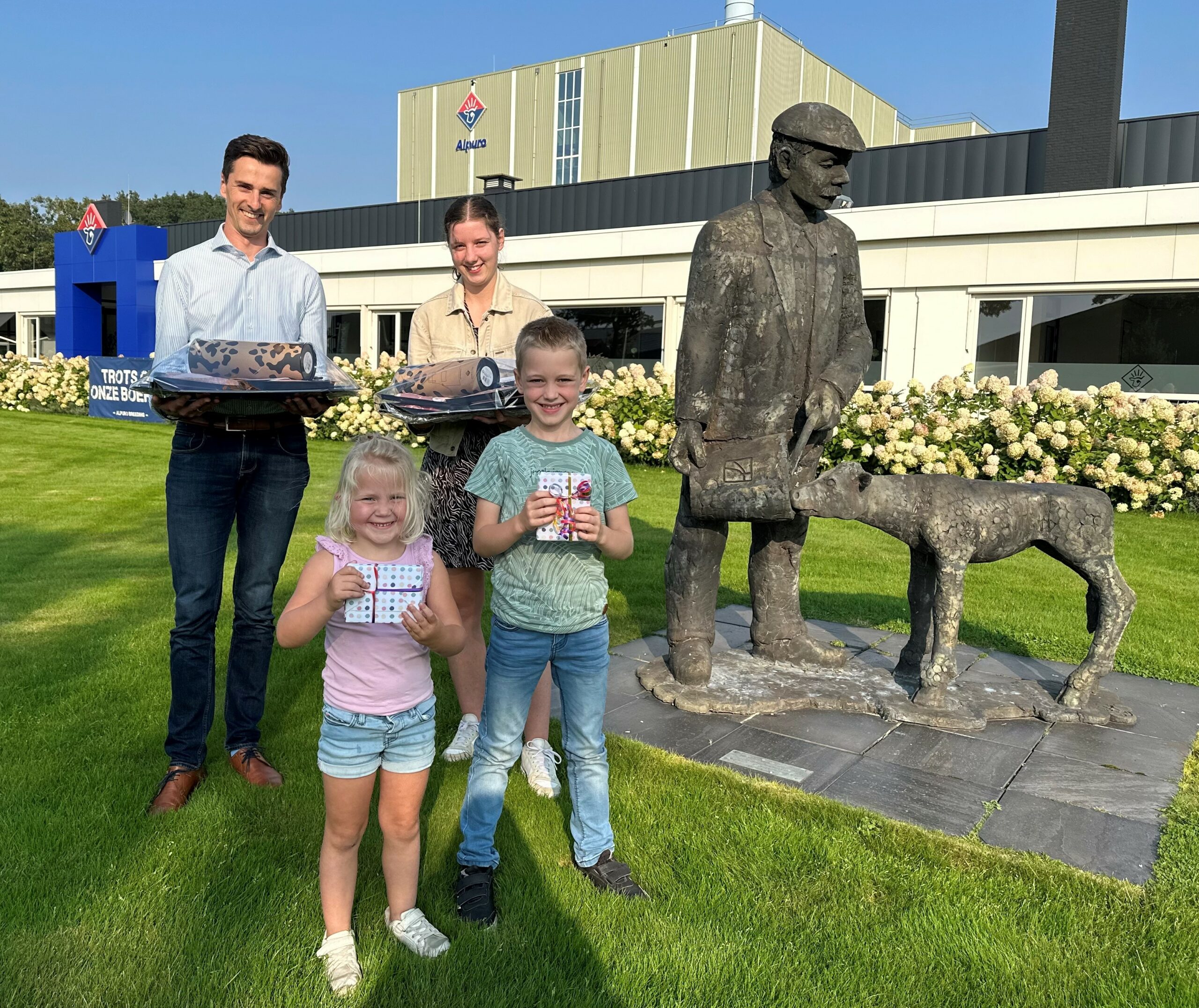 Bij Alpuro was er een speurtocht voor kinderen en een prijsvraag voor volwassenen. De kinderen konden tijdens het rondje door de fabriek speuren naar letters om daar vervolgens een woord van te maken. Het woord was Kalverliefde. De volwassenen mochten proberen te raden hoeveel muesli er in een vaas was gestopt. Dit was 12.311 gram. De 2 winnaars zaten hier maar 11 en 40 gram vanaf. Op de foto de 4 winnaars: Richard Groenwold, Gerdine van Ginkel, Esmée Bovendorp en Sven van de Kolk.
