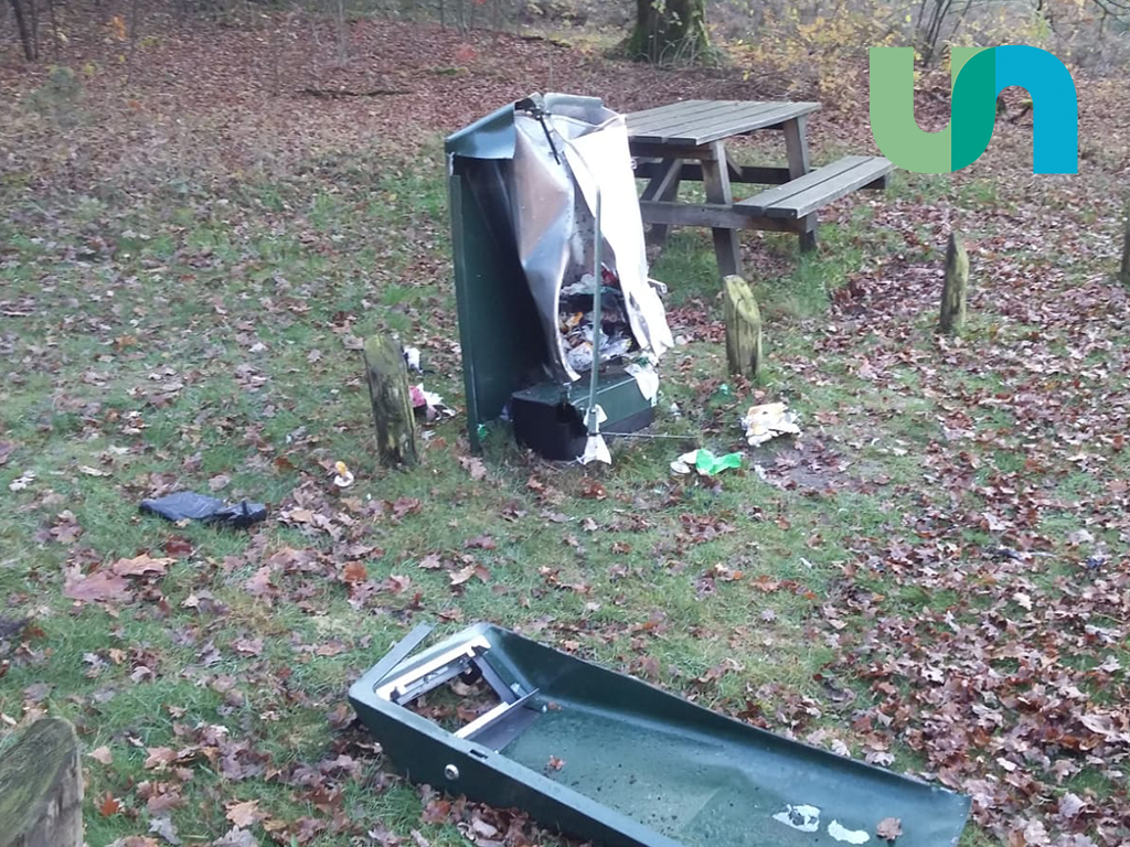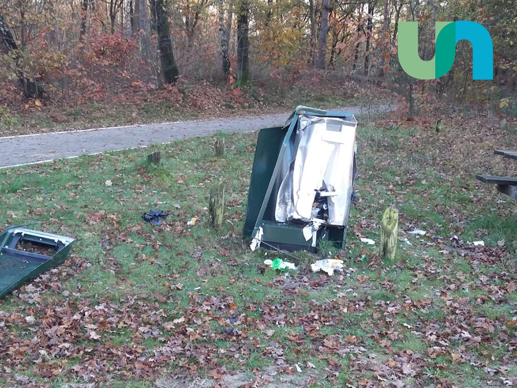 UDDEL/ELSPEET – Een prullenbak aan de Uddelerweg tussen Uddel en Elspeet is zwaar beschadigd. De afvalbak staat bij een picknickplek op een parkeerplaats ter hoogte van de Weideweg.
