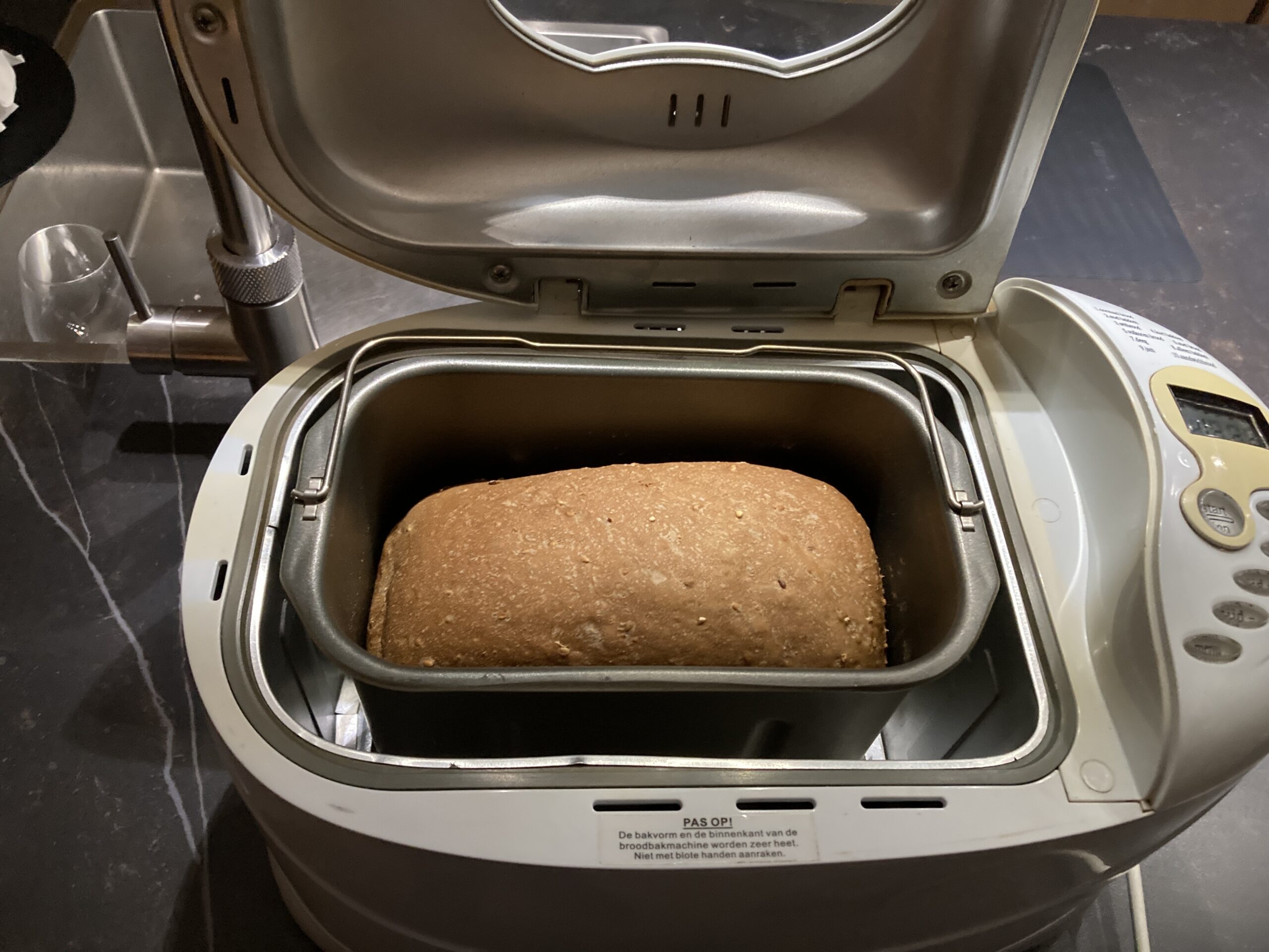 Op foto 4 is te zien dat de machine weer deed waarvoor hij was bedoeld: een lekker brood bakken!
