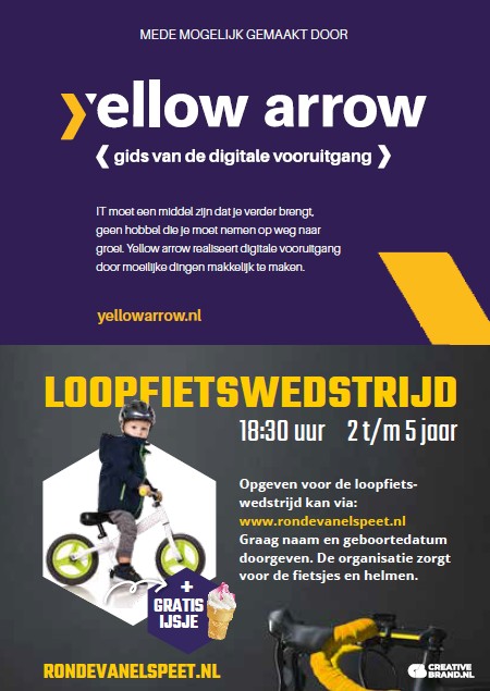 ELSPEET – Op woensdag 23 juli wordt de 34e Ronde van Elspeet gereden. Om 18.30 uur wordt er een loopfietsjeswedstrijd voor kinderen gehouden. Het parcours is enkele honderden meters en kinderen van 2 tot en met 5 jaar kunnen deelnemen. Opgeven voor de loopfietswedstrijd kan via: www.rondevanelspeet.nl. Graag naam en geboortedatum doorgeven, de organisatie zorgt voor fietsjes en helmen. Voor alle kids is er naderhand een gratis ijsje.