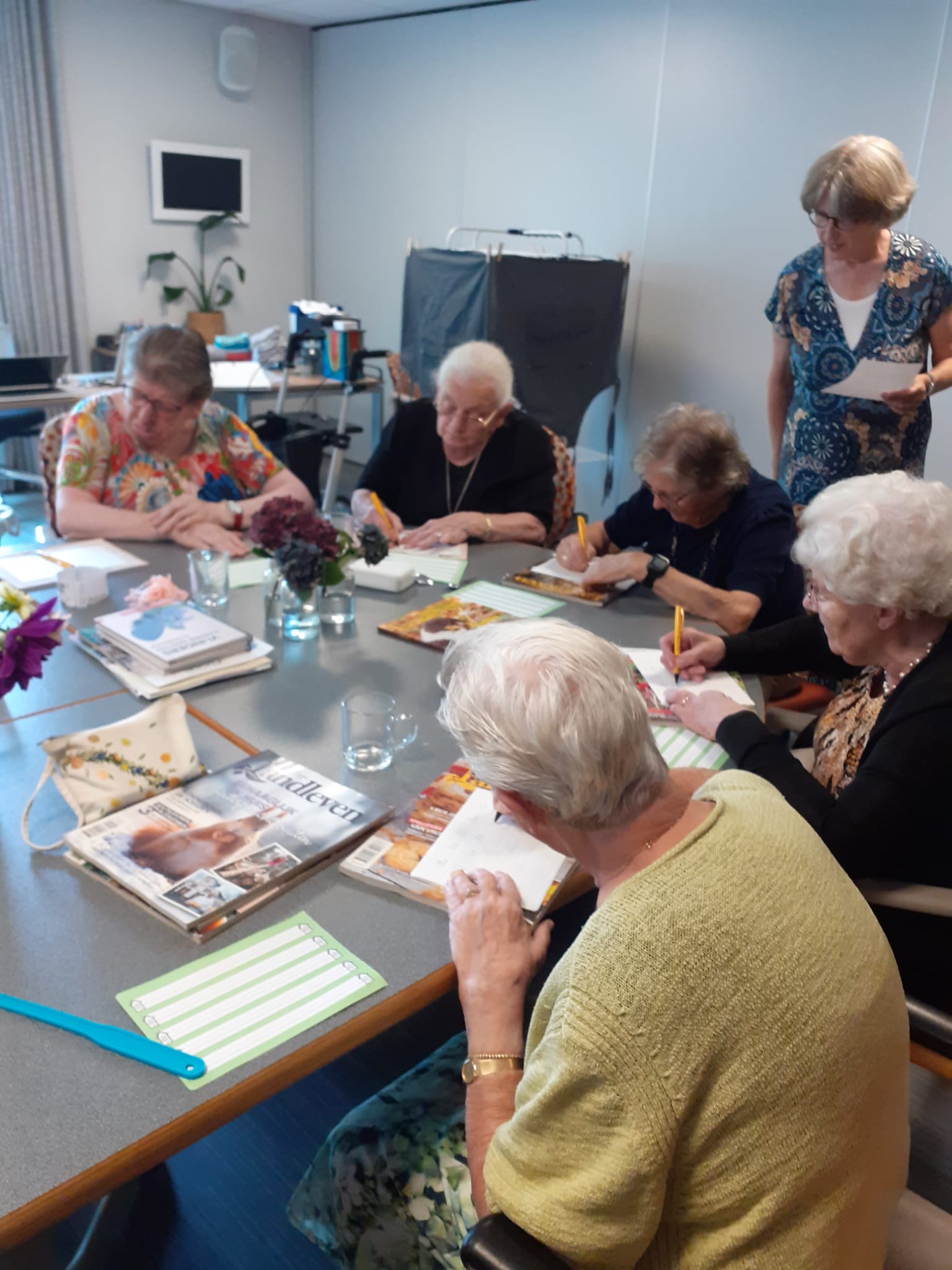 We hadden een muziekles in de tuinkamer en juf Joke v.d. Berg verzorgde een schrijfles. Ook werd er nog een memobord gemaakt.