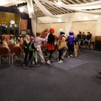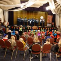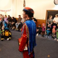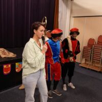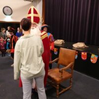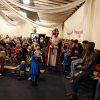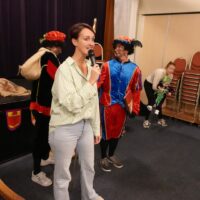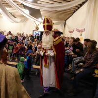 En toen opeens, Daar was hij dan, Hij had gewoon aan de bar nog even koffie gedronken. Niemand nam hem dat kwalijk want hij had er een lange reis op zitten. Angelique Bronkhorst sprak de Sint en Piet eerst toe en daarna kon het feest beginnen. Veel blije gezichten bij de kinderen. De ouders en stoute kinderen waren er gelukkig niet bij.