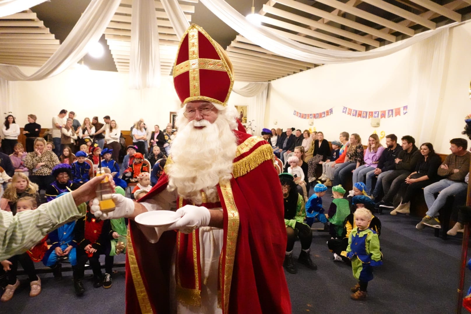 UDDEL – Zaterdag 15 november was het dan weer zover. Met medewerking van de Muziekvereniging Juliana Uddel werd de beste man uit Spanje weer verwelkomt door heel veel kinderen in Dorpshuis Het Blanke Schot. Veel Pieten liepen al rond door het Dorpshuis. Maar waar was de Sint? Hij was zoek, nergens te zien. Iedereen ging zoeken maar nee, ook niet in de schoorsteen.