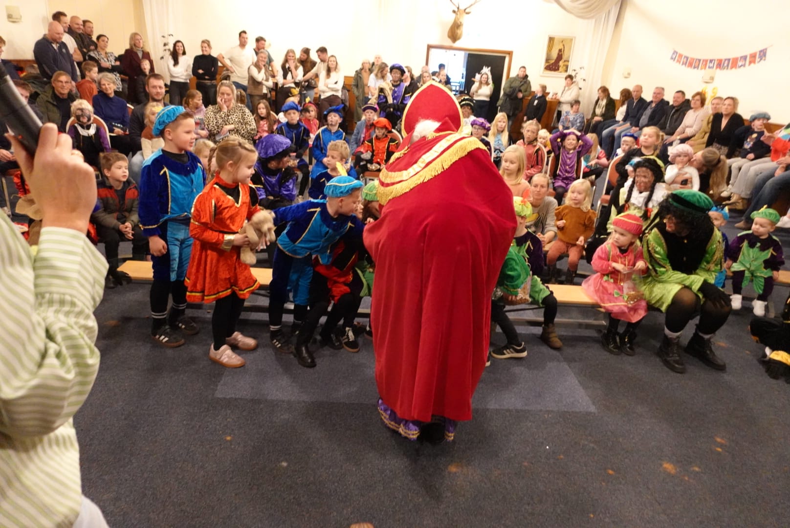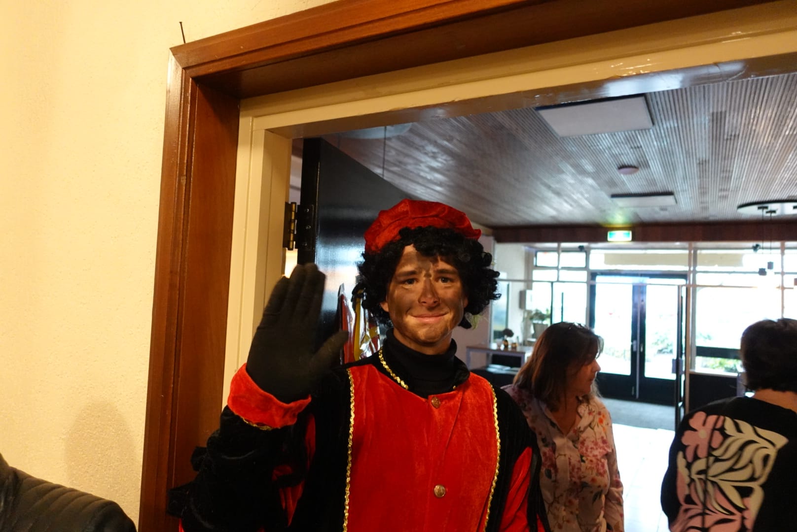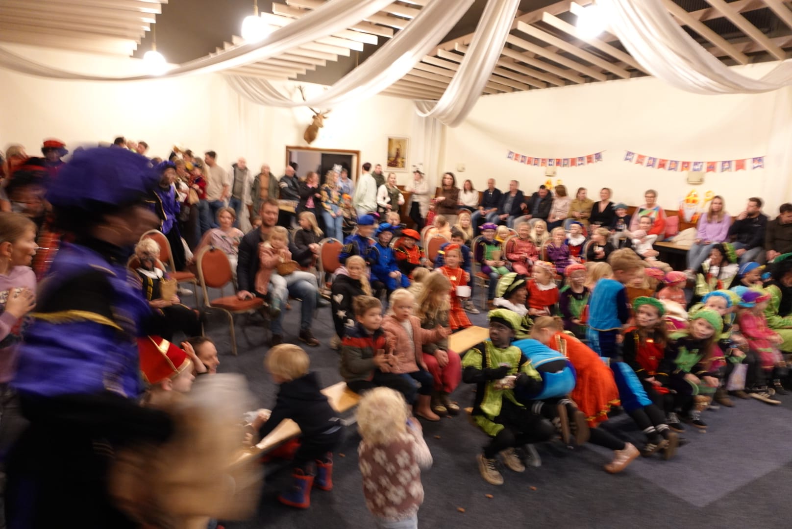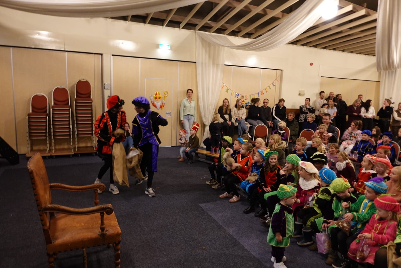 En toen opeens, Daar was hij dan, Hij had gewoon aan de bar nog even koffie gedronken. Niemand nam hem dat kwalijk want hij had er een lange reis op zitten. Angelique Bronkhorst sprak de Sint en Piet eerst toe en daarna kon het feest beginnen. Veel blije gezichten bij de kinderen. De ouders en stoute kinderen waren er gelukkig niet bij.