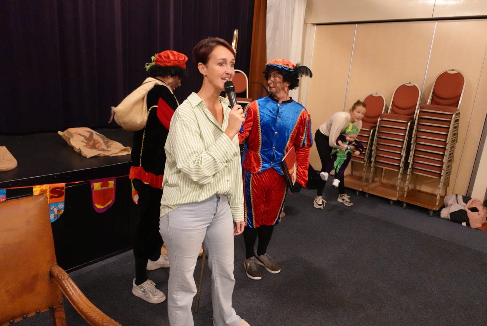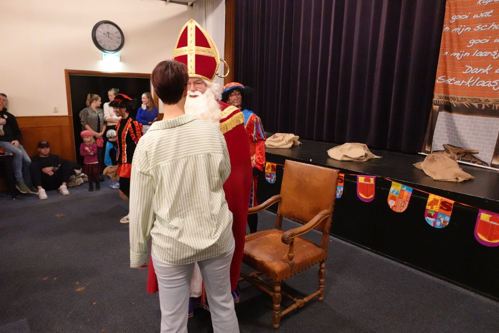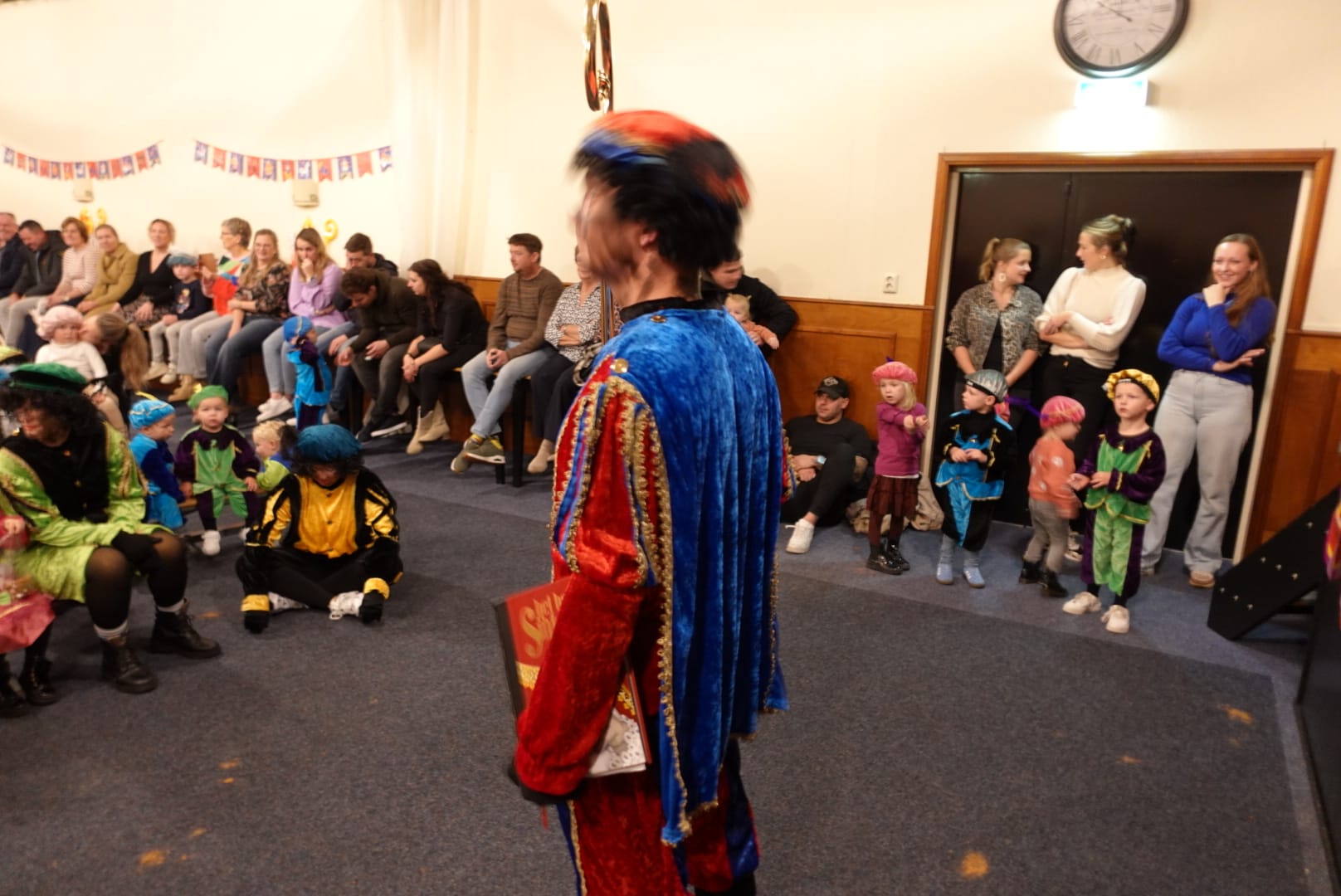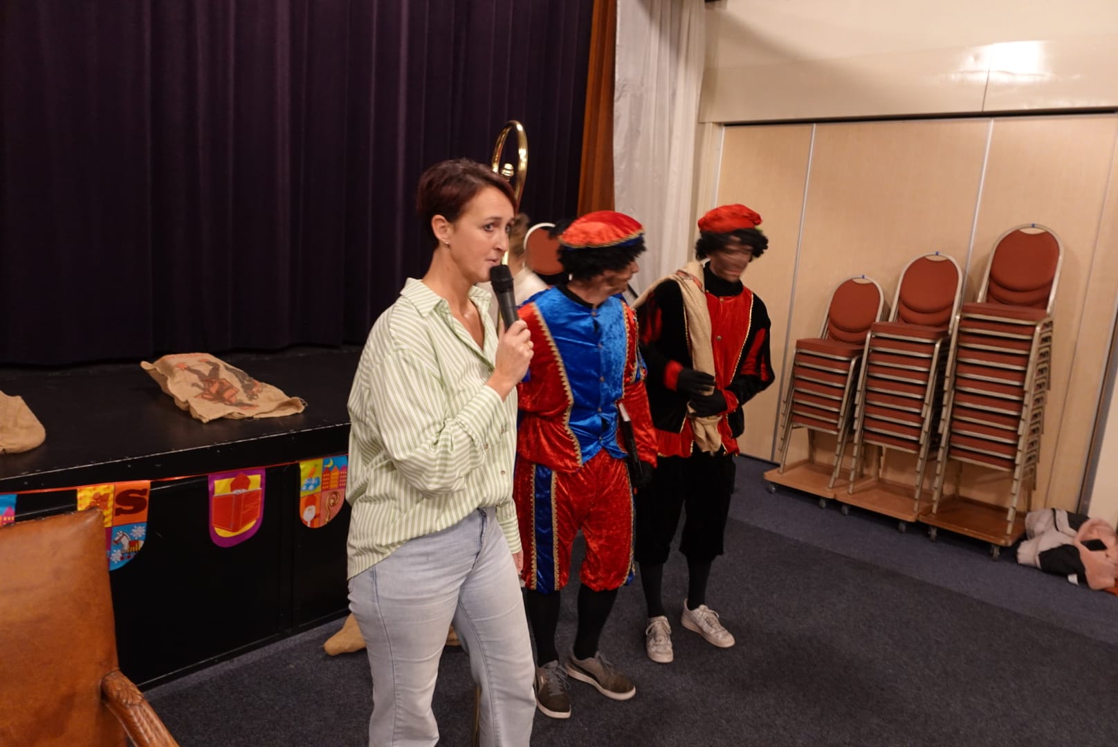 En toen opeens, Daar was hij dan, Hij had gewoon aan de bar nog even koffie gedronken. Niemand nam hem dat kwalijk want hij had er een lange reis op zitten. Angelique Bronkhorst sprak de Sint en Piet eerst toe en daarna kon het feest beginnen. Veel blije gezichten bij de kinderen. De ouders en stoute kinderen waren er gelukkig niet bij.
