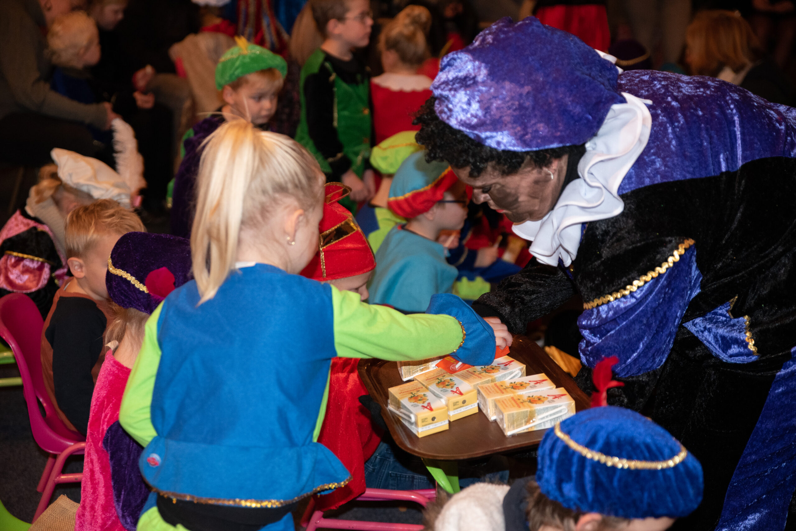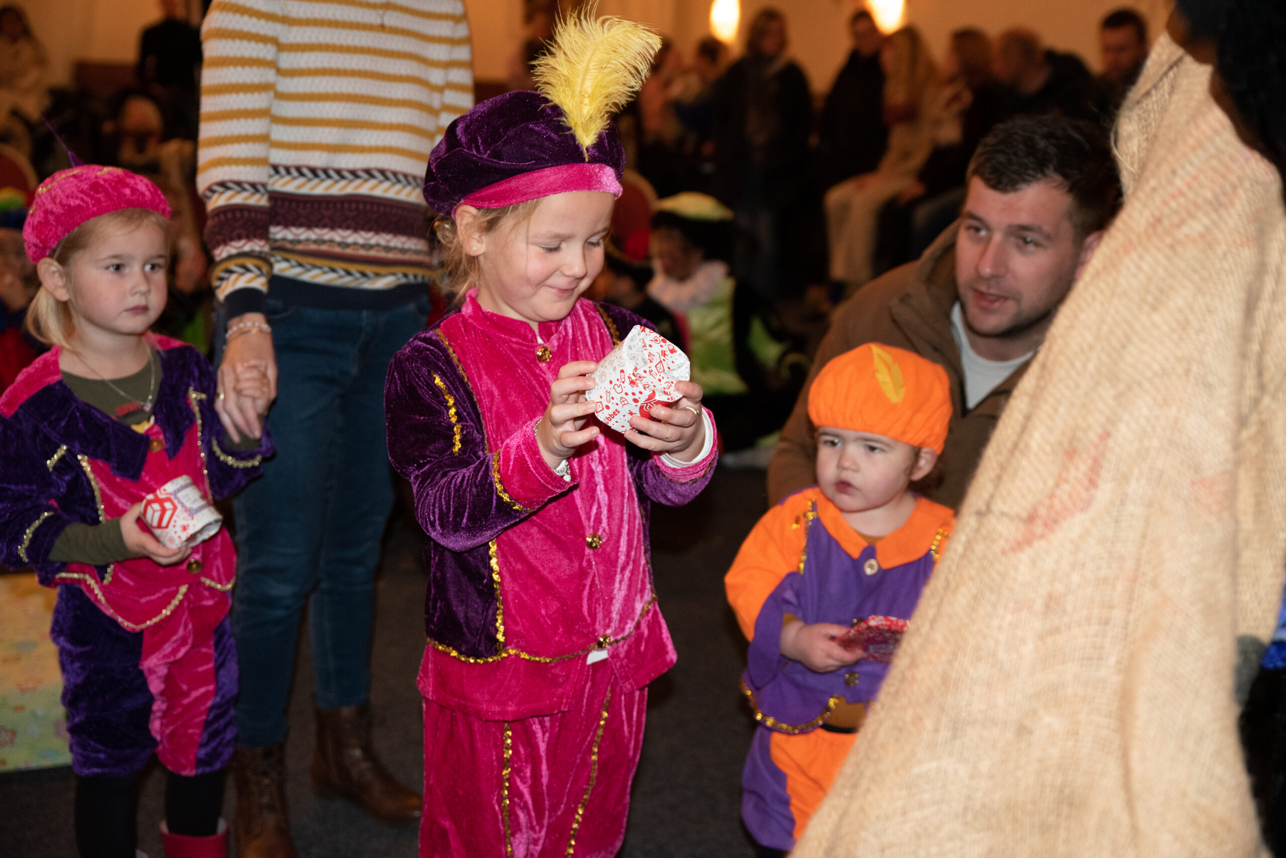 Na al dat dansen kregen de kinderen wat te drinken en was het tijd voor de cadeautjes, want die had Sinterklaas natuurlijk ook meegenomen.