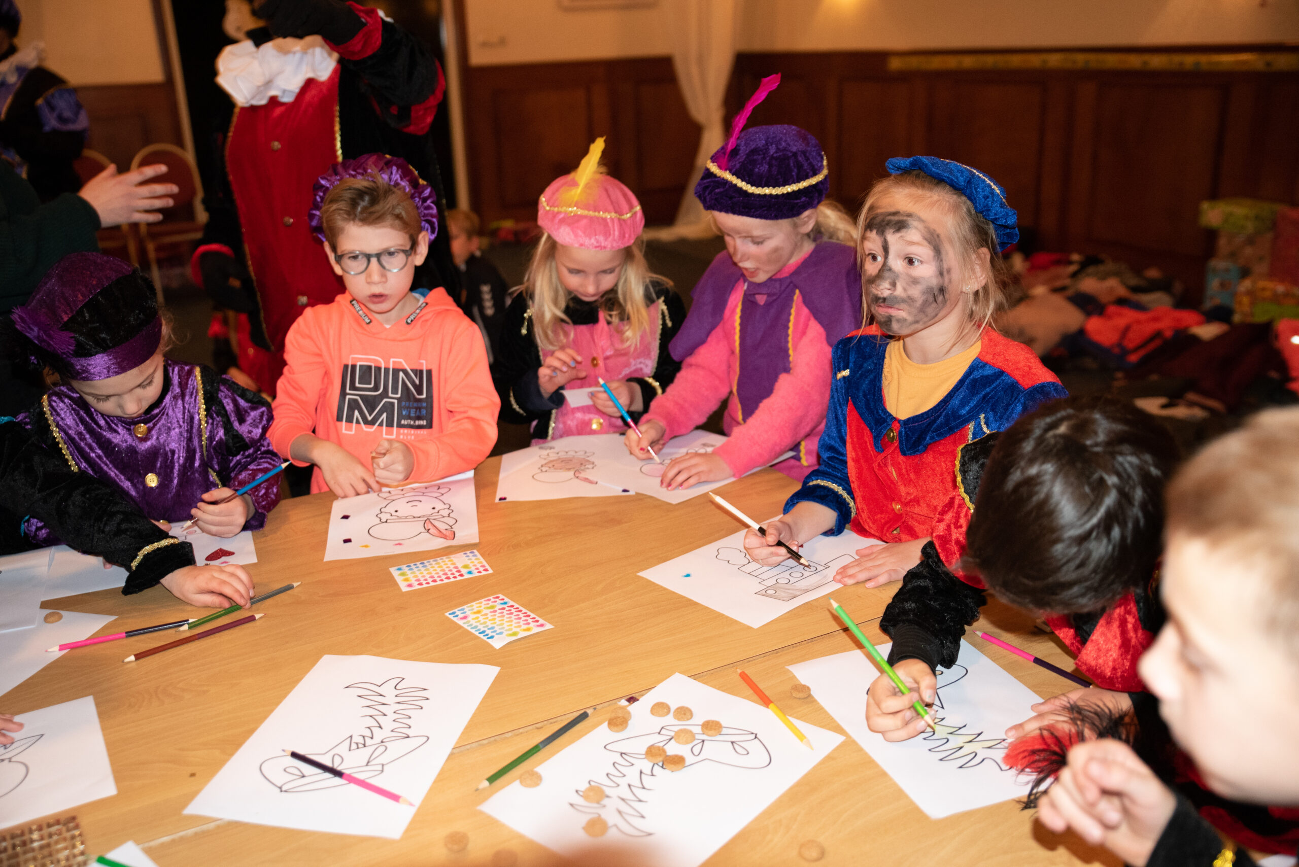 In de middag was het tijd voor de grote kinderen. Ook zij hebben gedanst met de danspietjes. Maar ook een quiz gedaan en gekleurd en geplakt.