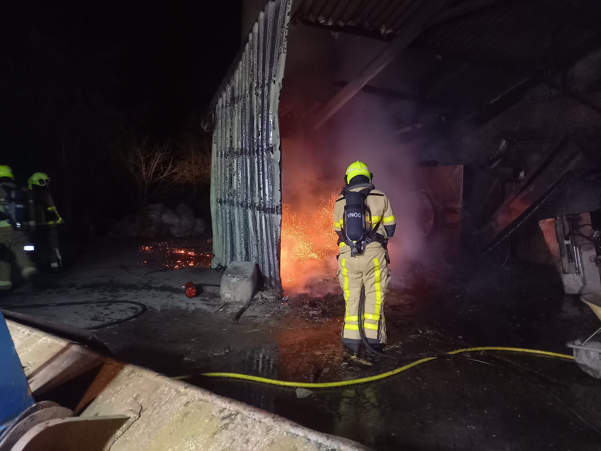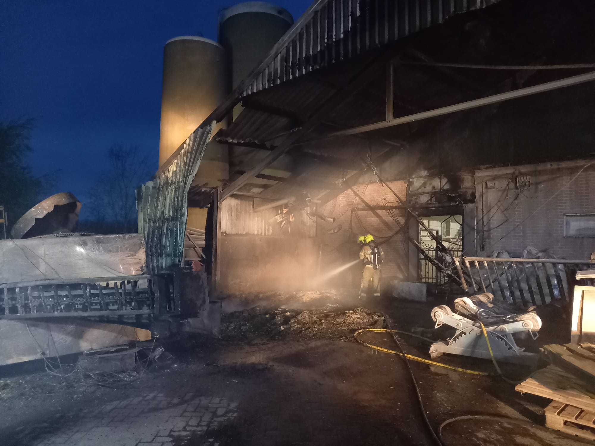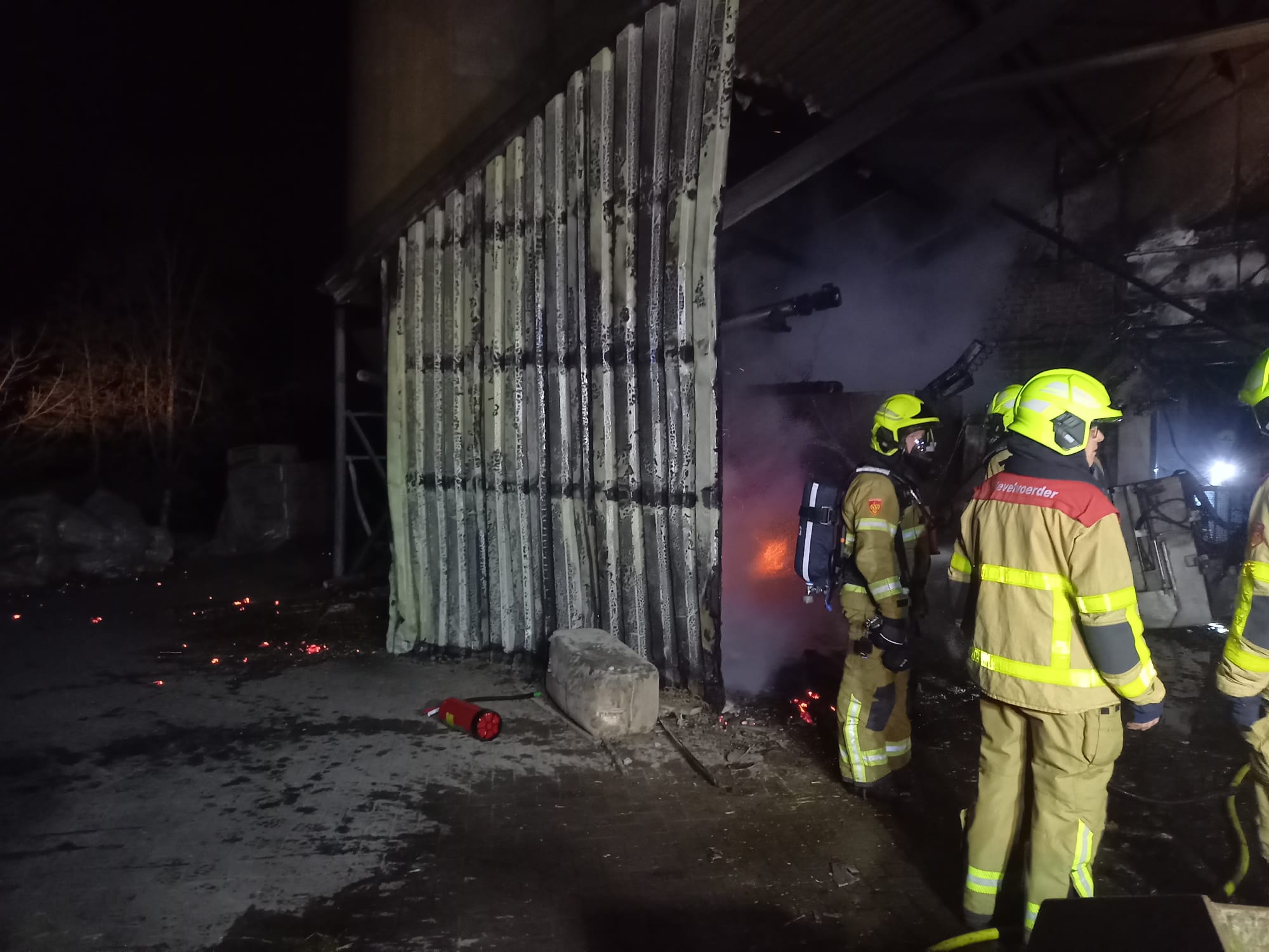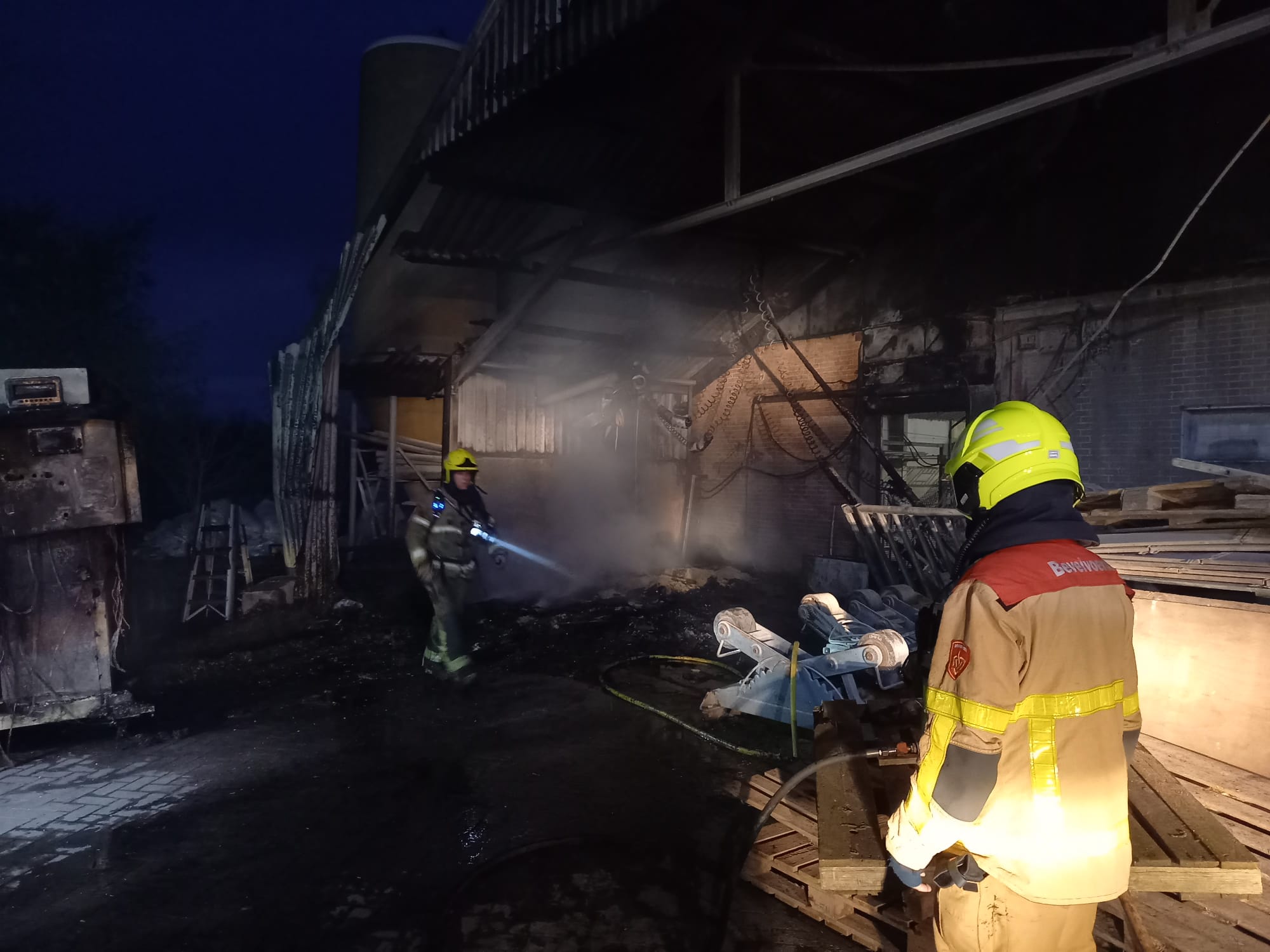 UDDEL – Zondagmorgen, 7 april, om 5.22 uur gingen de pagers van Brandweer Uddel voor een stalbrand aan het Uddelerveen in Uddel. Onderweg werd er door de meldkamer opgeschaald naar grote brand in verband met de hoeveelheid kalveren die daar aanwezig zijn. Ter plaatse bleek het te gaan om een brand onder een afdak waar stro en een voermachine in brand stonden. Door snel optreden werd voorkomen dat de brand zich uitbreidde naar de kalverschuur. De schade bleef beperkt tot enkele machines en schade aan de overkapping.