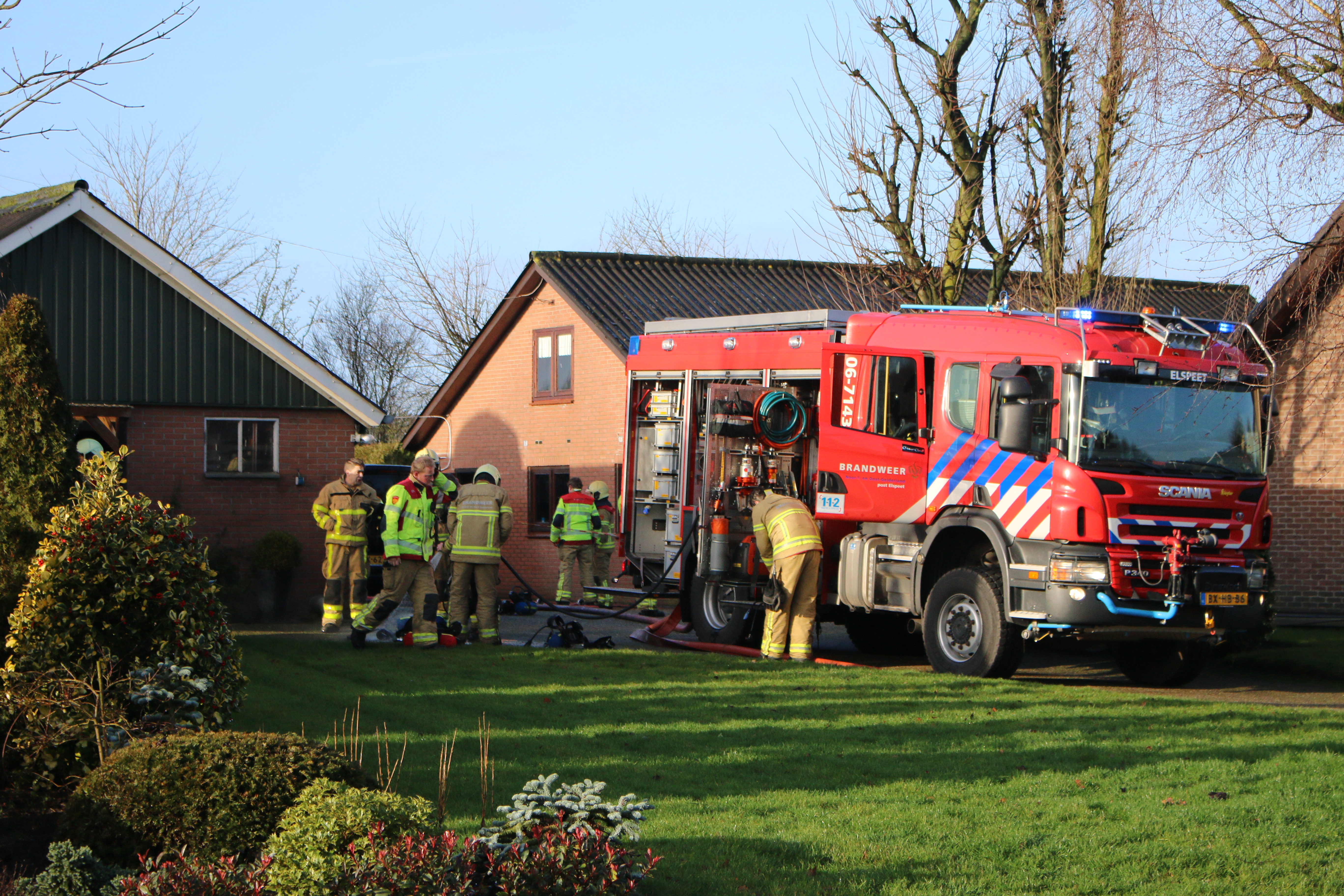 #Elspeet #Molenweg De brandweer is met diverse voertuigen ingezet. In de schuur staat nog vee.