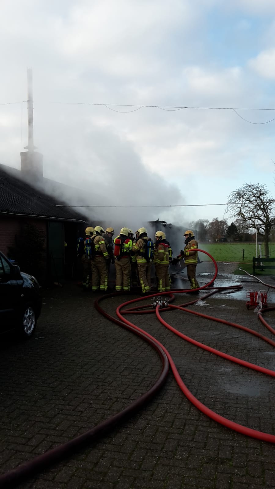 De stal kwam vol met rook te staan, maar het vee is ongedeerd gebleven. Het is onbekend hoe de brand is ontstaan.