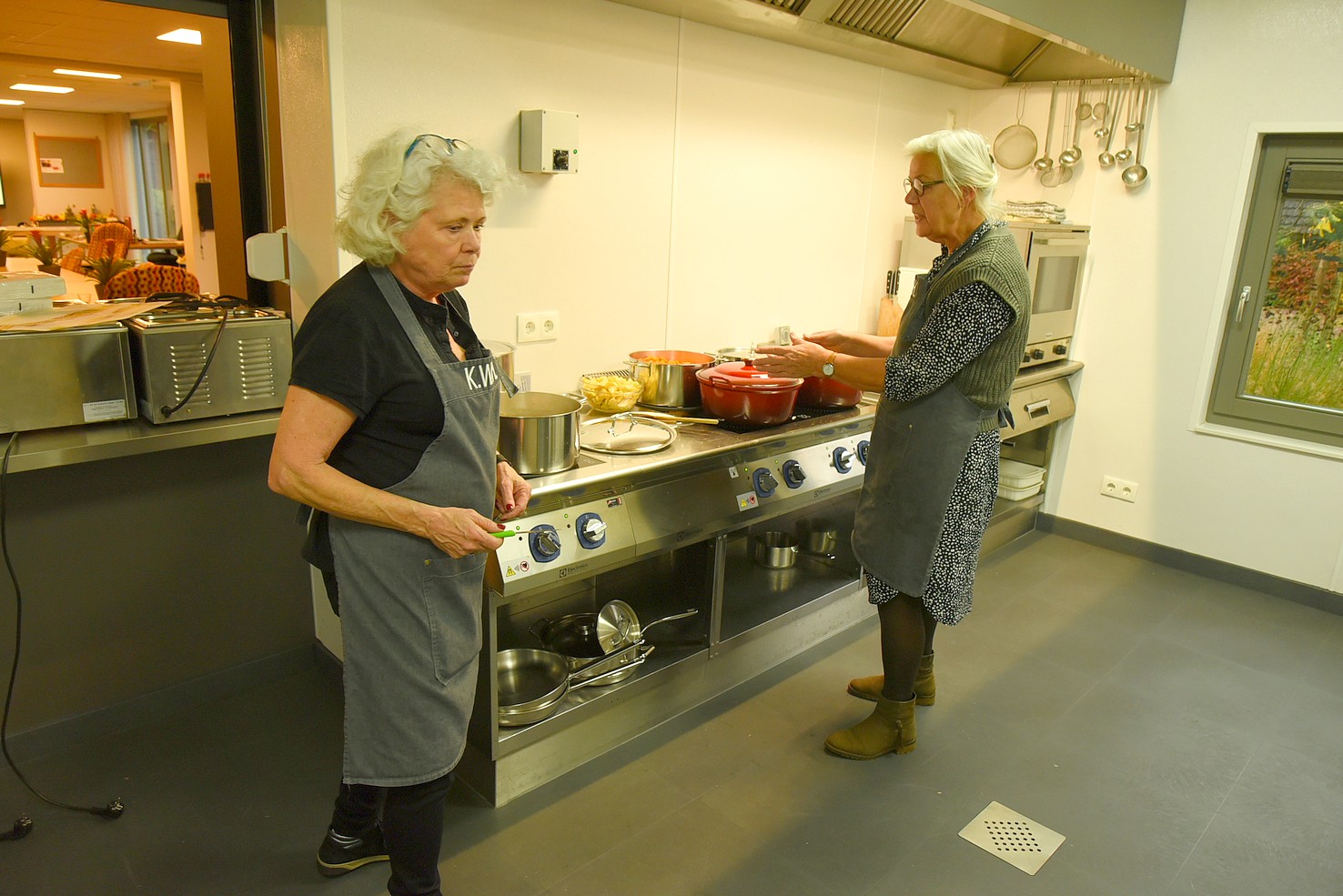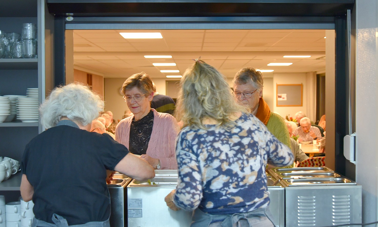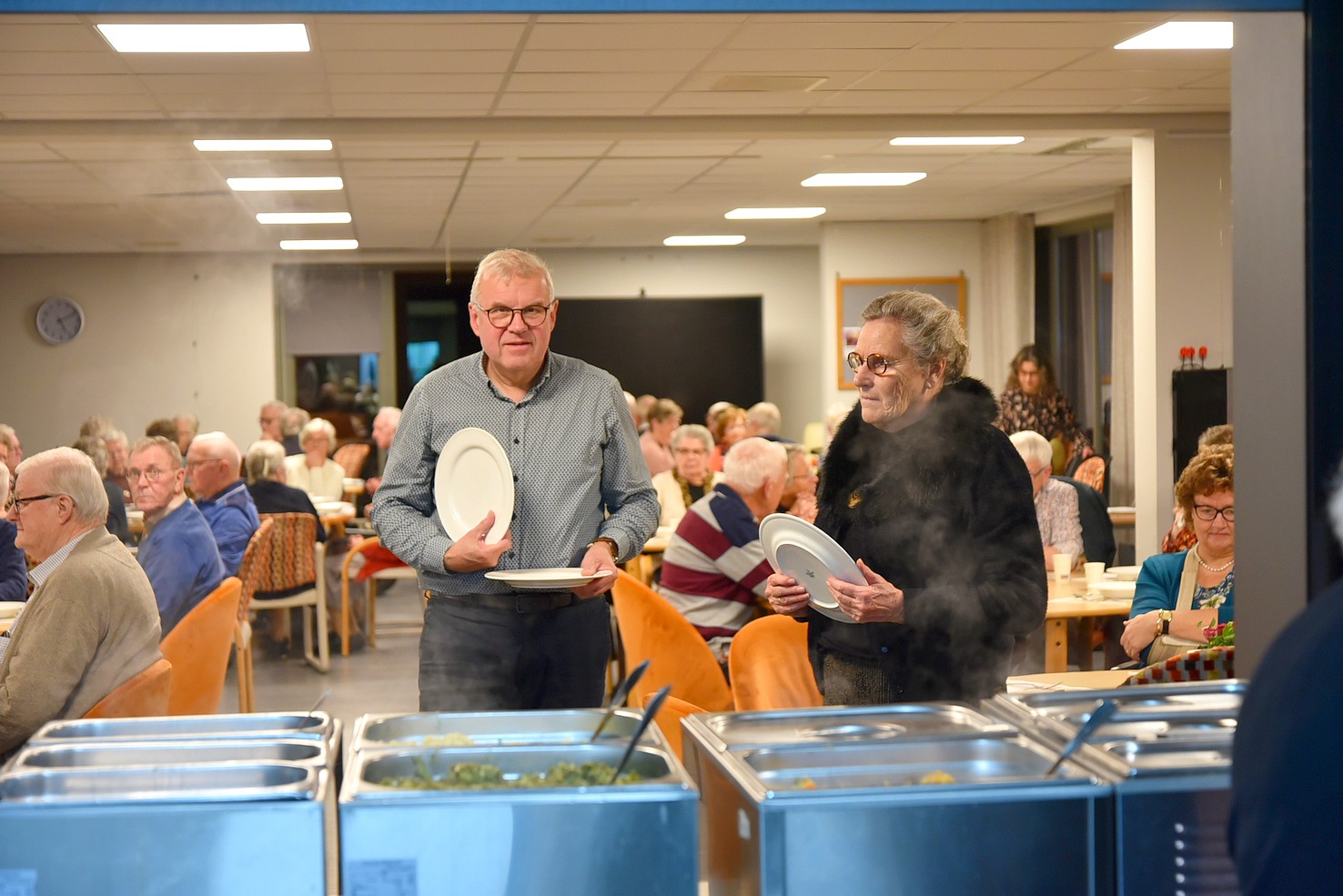 Dat was ook het menu dat op de kaart stond in de Wilhelminahof, het jaarlijkse stamppottenbuffet op woensdag 27 november. De kooksters van Uddel Samen zijn de hele middag druk geweest om het allemaal op tijd klaar te krijgen. Als je voor ruim 60 personen moet koken heb je tijd nodig, maar het was op tijd klaar.