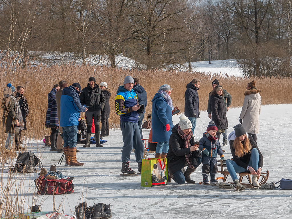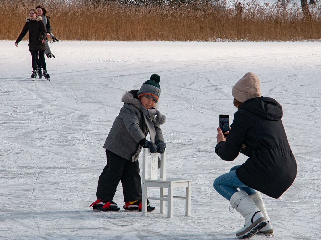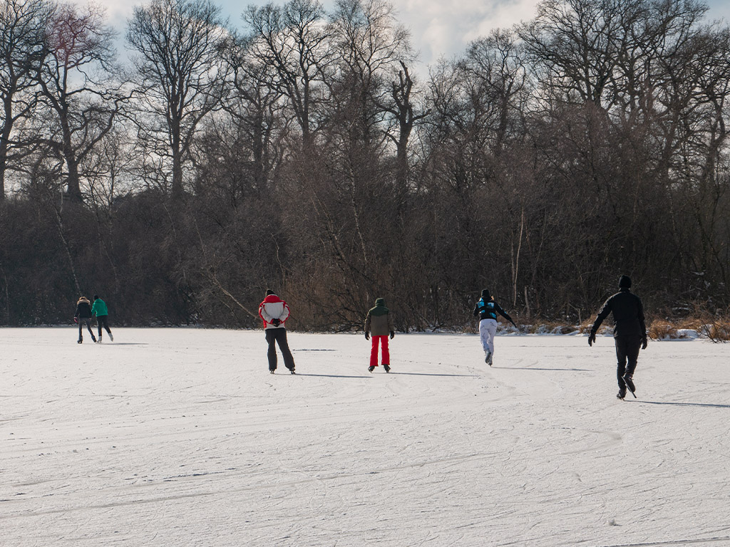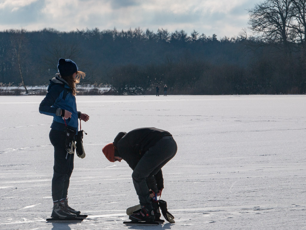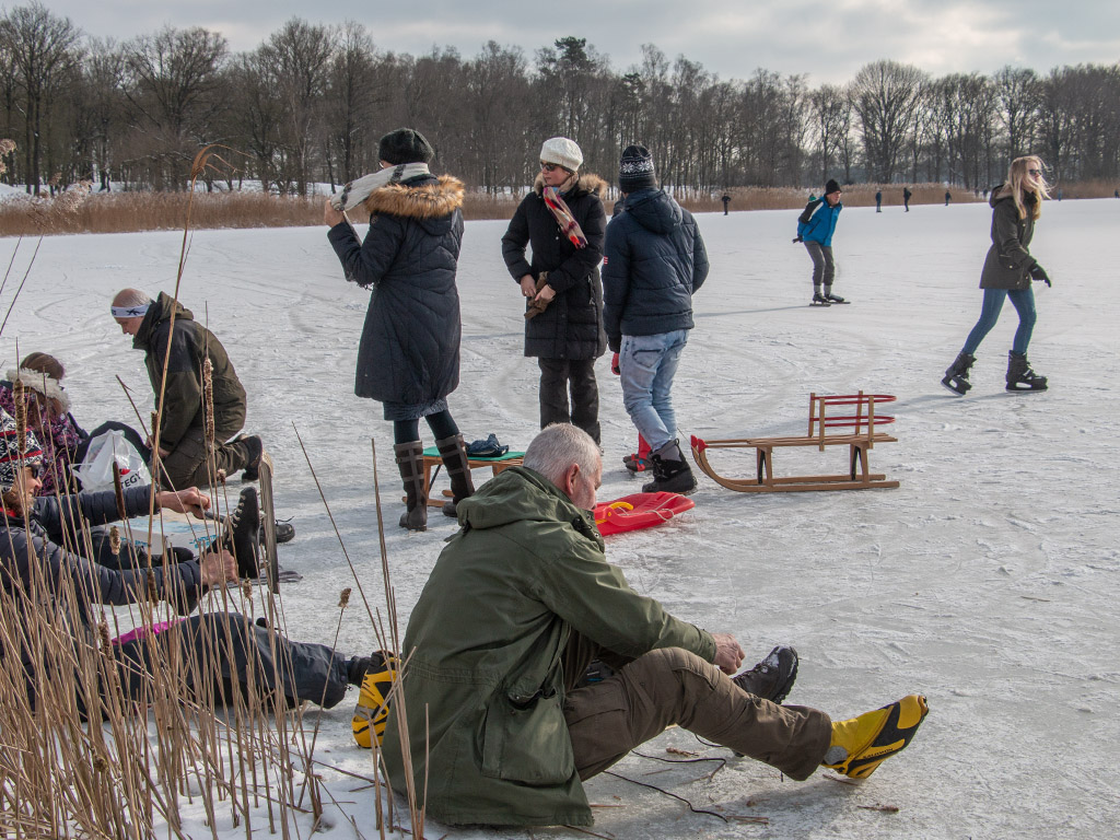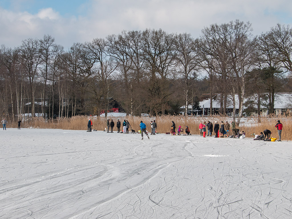 Het is nog wel erg goed opletten. Het ijs is nog niet dik genoeg voor grote groepen mensen. Zo was de ijsdikte rond 14.00 uur vrijdagmiddag bij de kanten rond de 6 centimeter. Iets verder naar het midden werd een dikte gemeten van 7 centimeter.