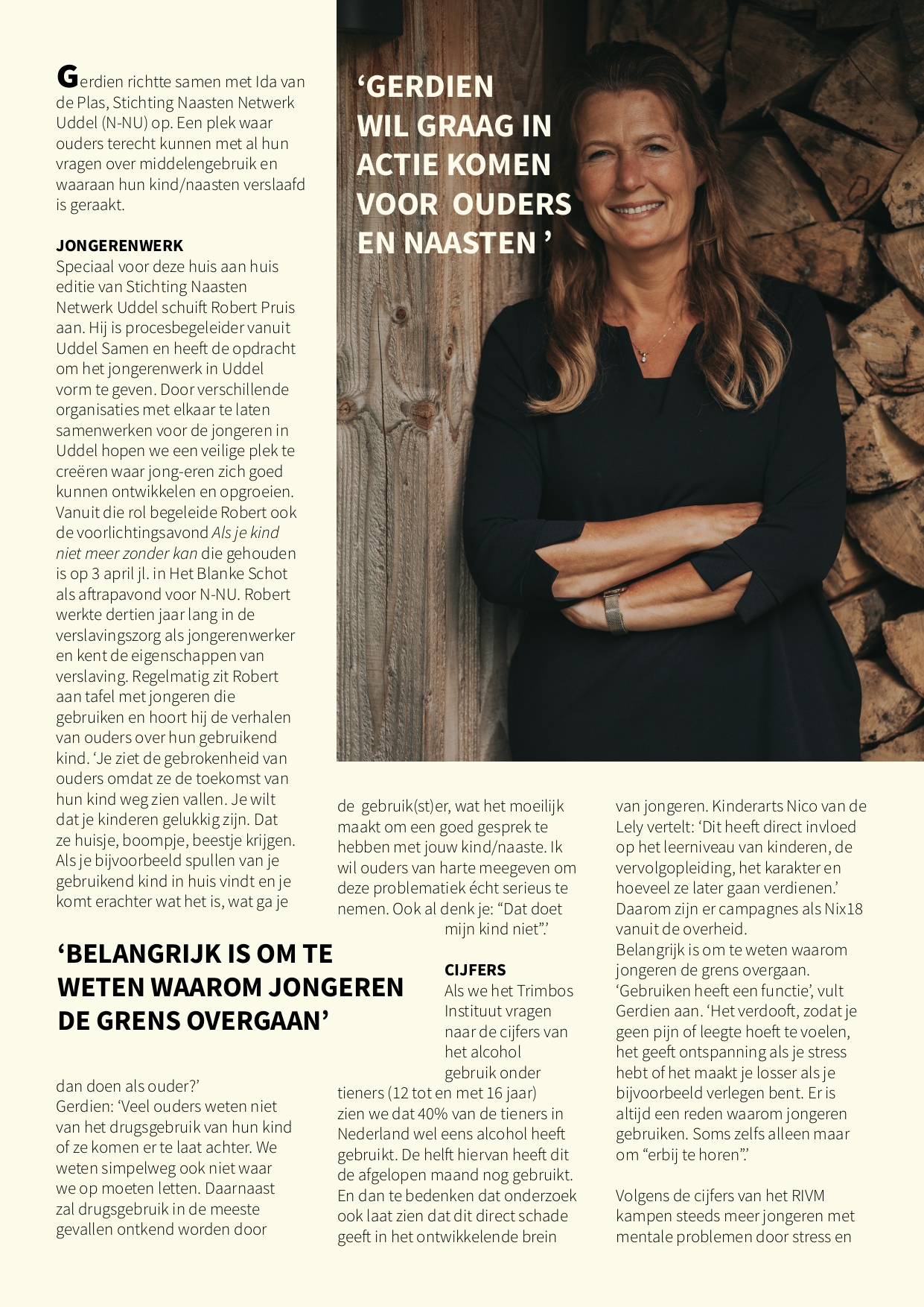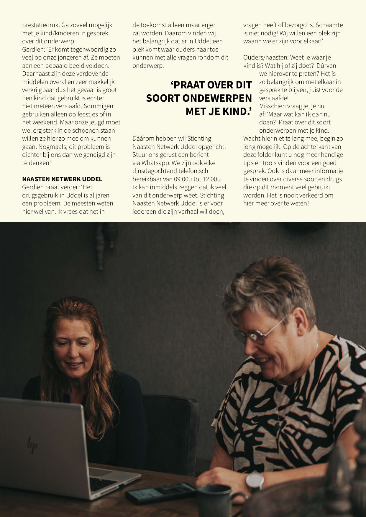 UDDEL – Onlangs is Stichting Naasten Netwerk Uddel opgericht. Een plek waar ouders terecht kunnen met al hun vragen over middelengebruik en waaraan hun kind/naasten verslaafd is geraakt. De vragen over drugs, verslaving van uw naasten en de invloed van middelen op het gedrag van je naasten en dus op jou zelf staan centraal bij N-NU. Voorlichting, een luisterend oor, begrip en begeleiding voor u als naaste van een persoon die kampt met een verslaving. Kennis verspreiden over middelen en verslaving in Uddel.