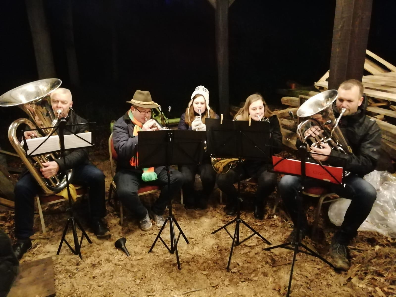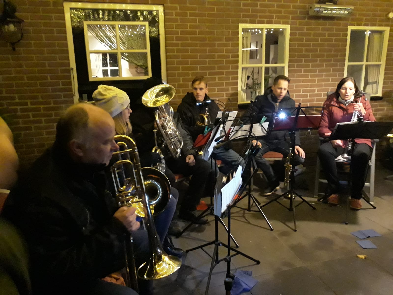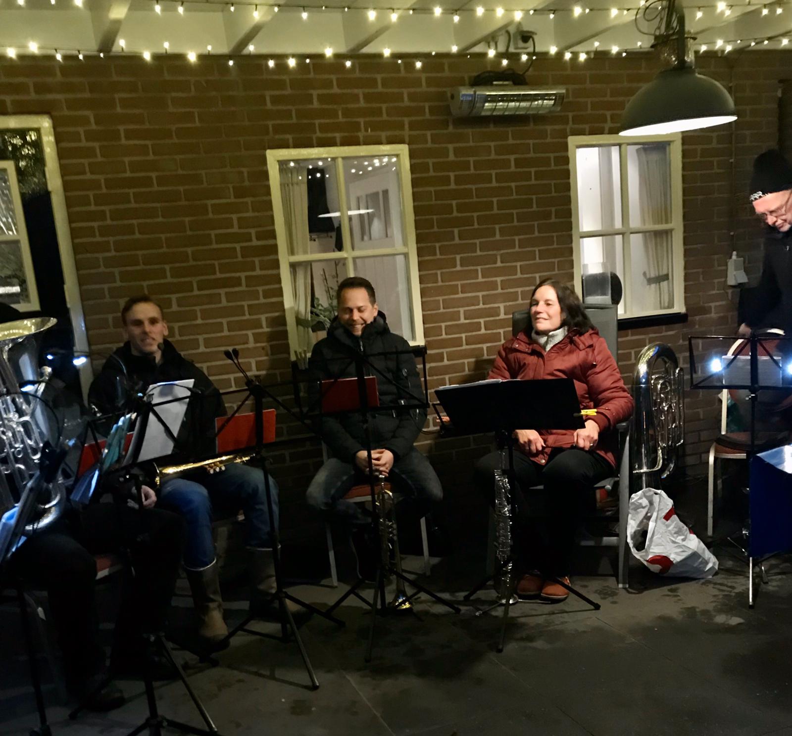 Gelukkig stopte de regen na een korte tijd, maar in de bossen werd het er niet beter op, helaas. Door de waterplassen van lampje naar lampje. Onderweg was het toch super gezellig en bij de eerste ‘muzikale’ stop kreeg men chocomel of glühwein en bij de tweede een heerlijk bakje erwtensoep om weer warm te worden. Tijdens deze stops bracht een ensemble van muziekvereniging Juliana sfeervolle muziek ten gehore, wat de gehele ervaring compleet maakte.