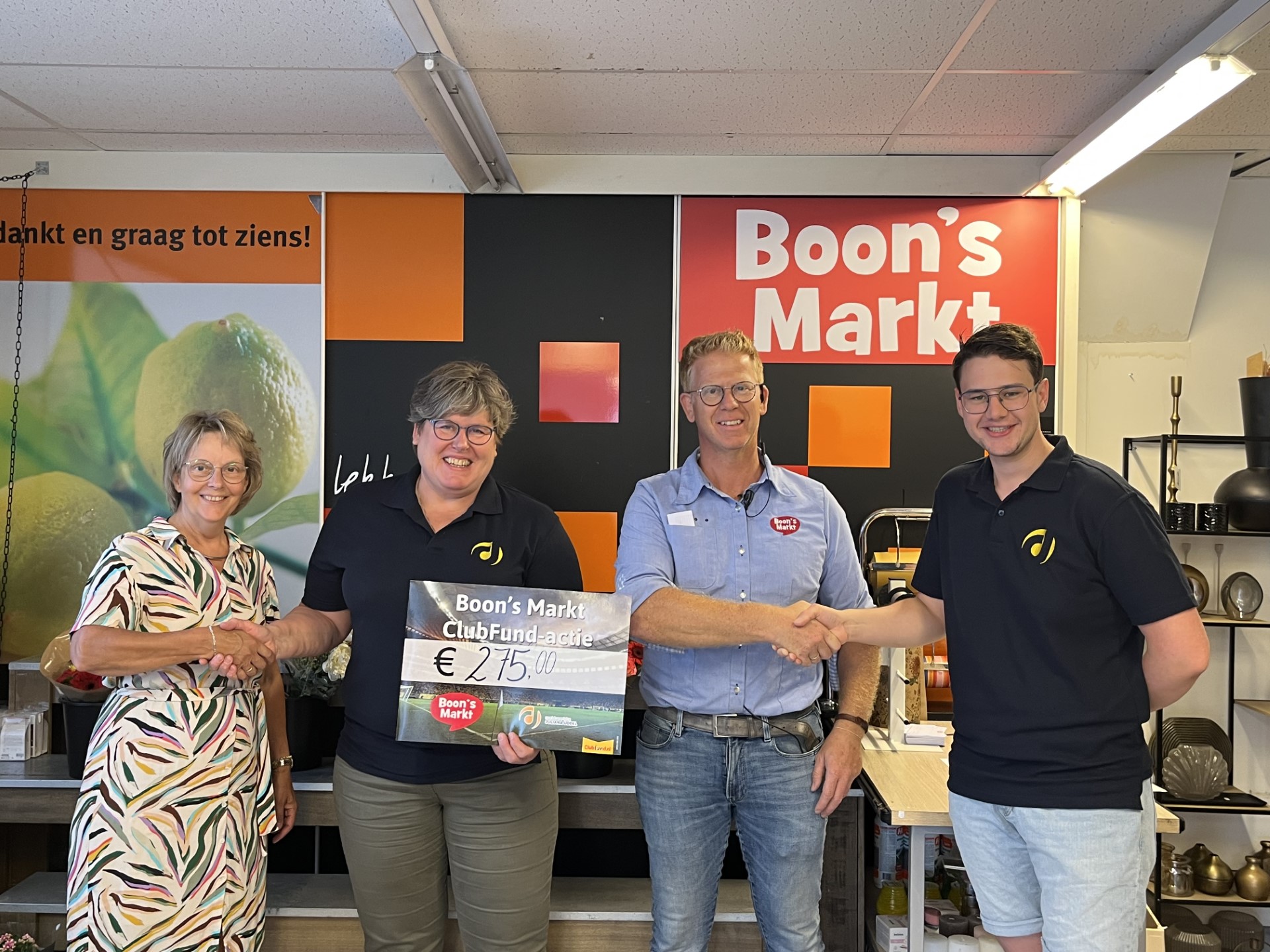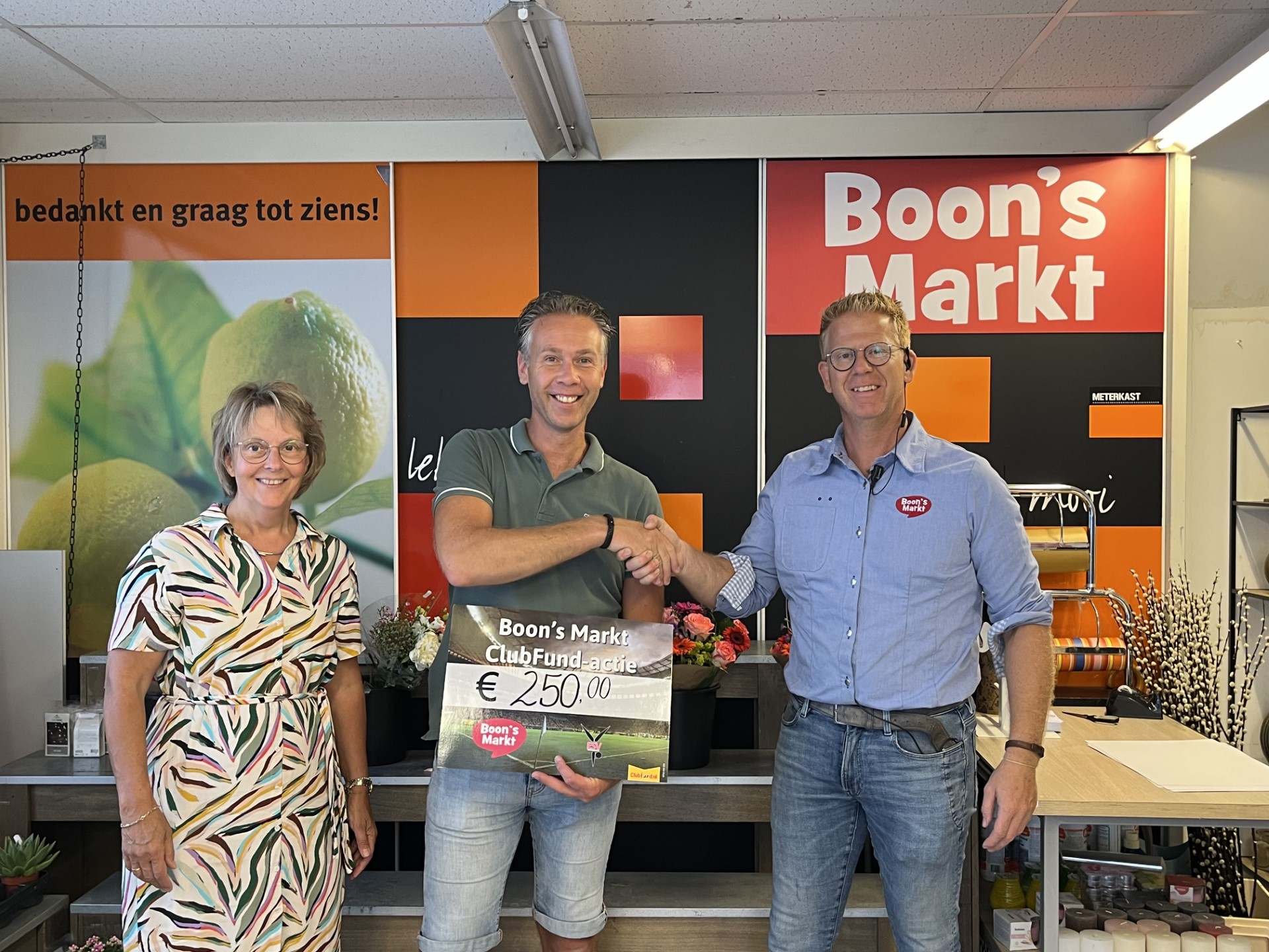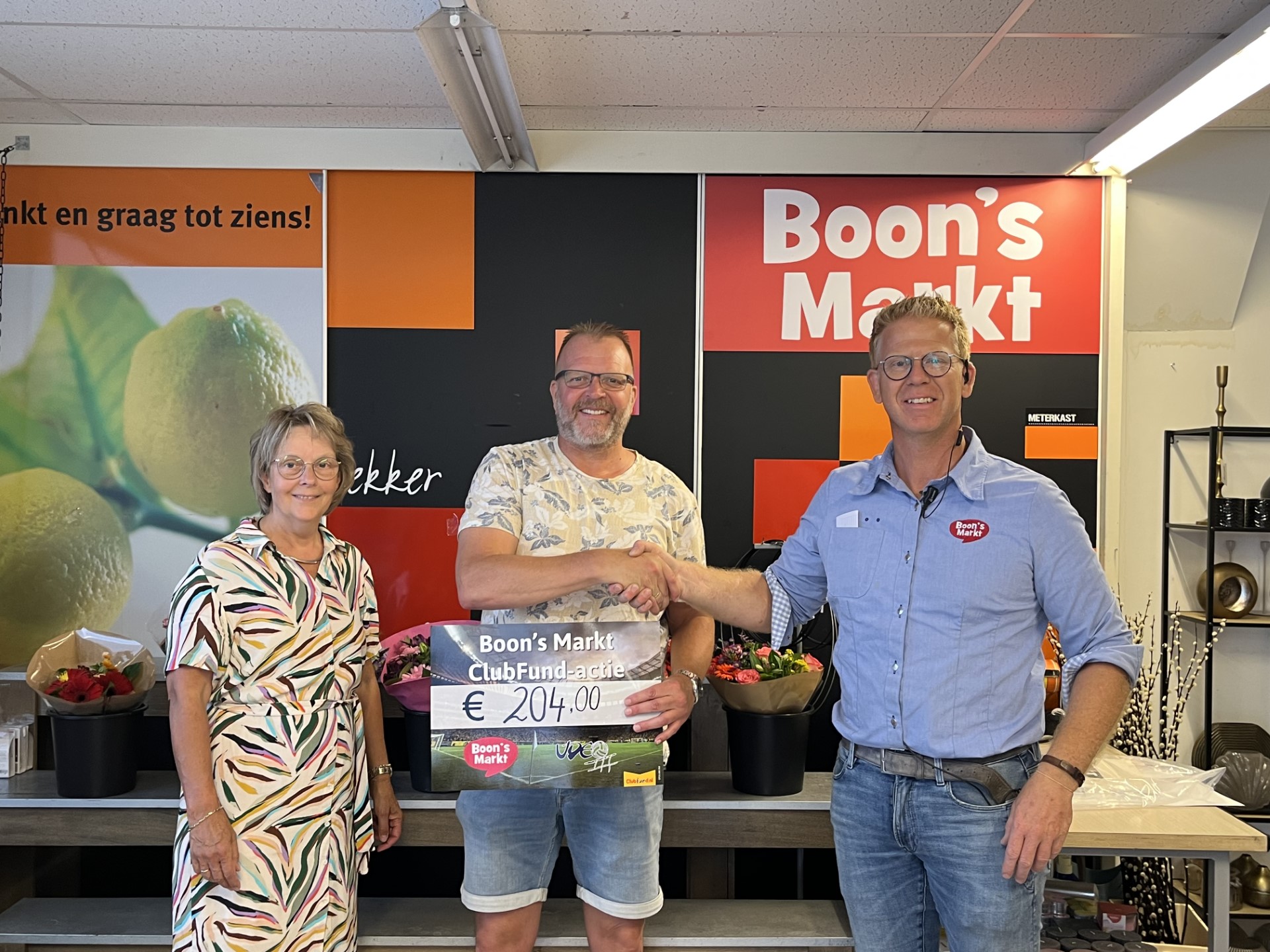 Zaterdag 15 juli zijn de cheques voor de clubkas uitgereikt door Jeanet Schouten en Evert-Jan van Egteren, van de Boon’s Markt in Uddel aan de afgevaardigden van de verenigingen. (zie foto’s)