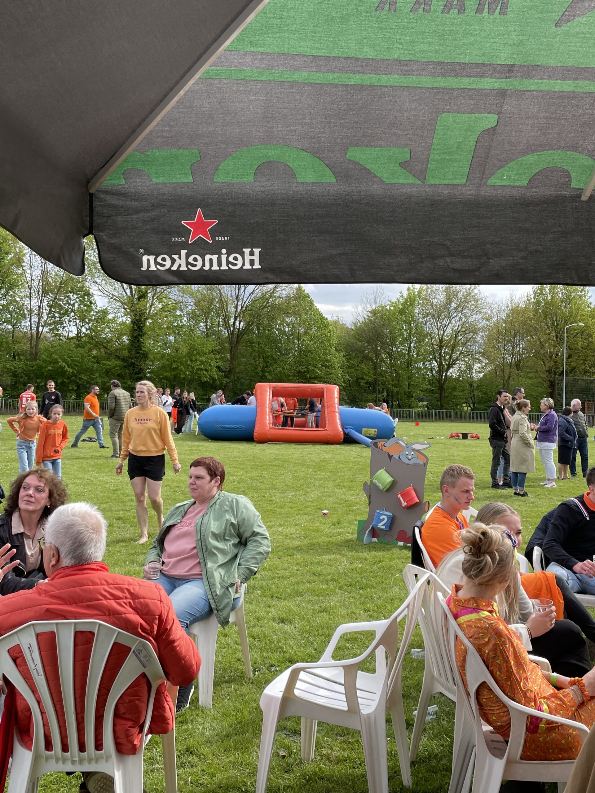 Dj Jaap uit Elspeet kreeg de sfeer er goed in en er werd gezellig gekletst en gebarbecued achter het Blanke Schot. De Oranjevereniging is blij met alle vrijwilligers die deze dag tot een zeer geslaagde hebben gemaakt.