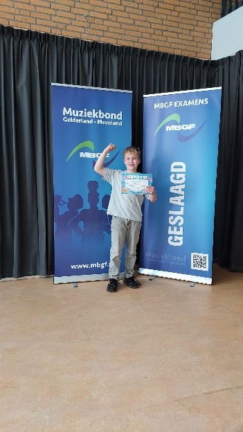 Er werden duetten op trompet (Boaz en Karel), bugel (Ivana en Lize) en Euphonium (Evi en Henk) en ook solo’s op Hoorn (Feya), Bas (Ida), Trombone (Remke) en Saxofoon (Hans) gespeeld. En dan niet te vergeten onze slagwerkers, Finn op Xylofoon, Vibraslab, Tomtom en Tamboerijn, Joel op Drums en Sjors op de Pauken. Alle instrumenten die je maar zou kunnen bedenken om op te spelen kwamen langs. De keuze was reuze!