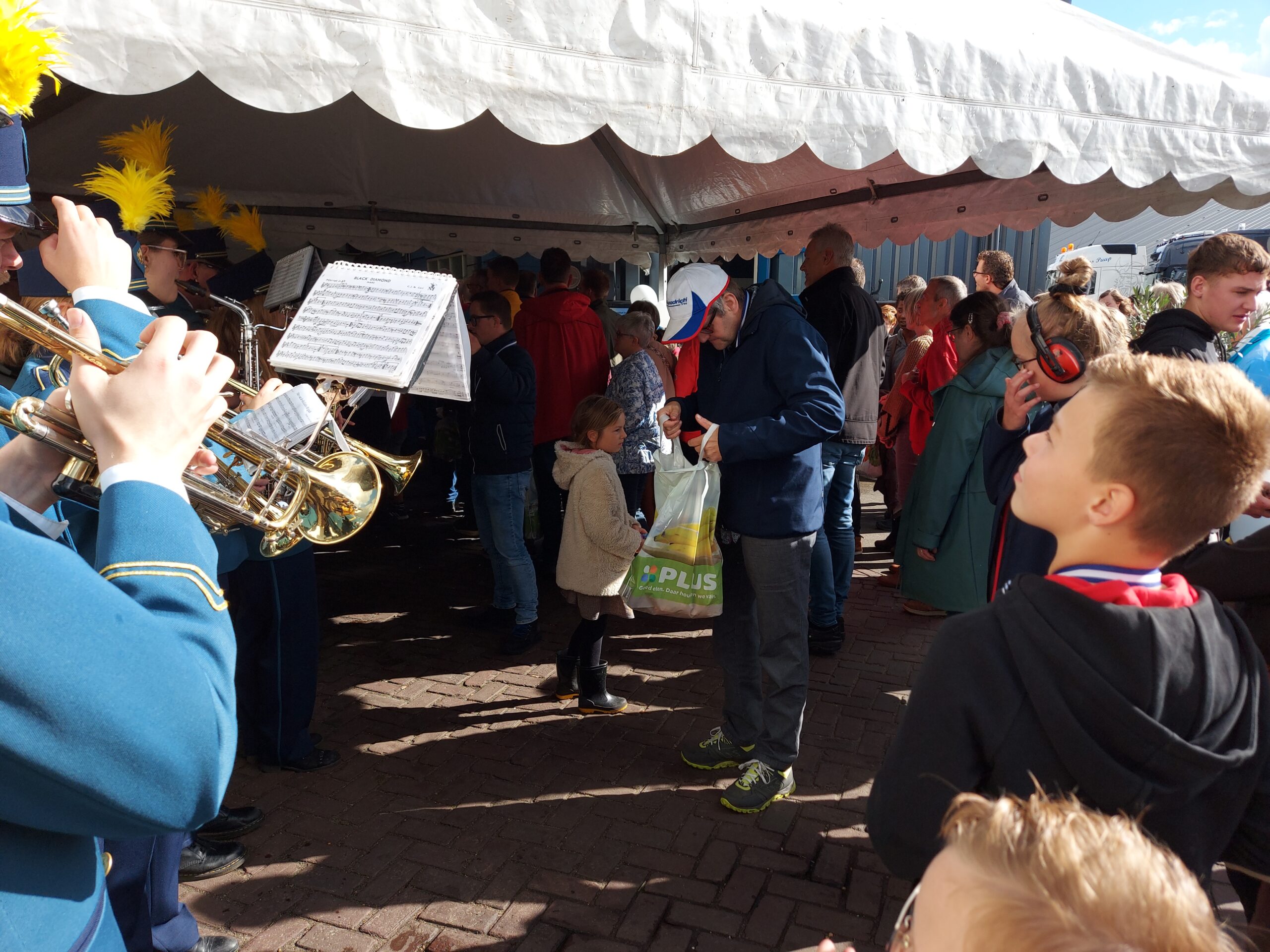 Bij terugkomst werden de deelnemers en hun chauffeurs verwelkomt door het muziekkorps.