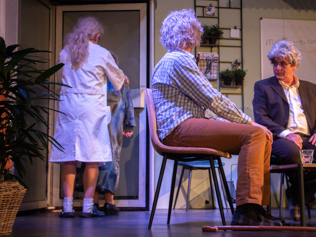 De drie bejaarden die kunnen rekenen op de zorg van de directrice (Gerdien Boeve), zuster Theadoramiena (Ariette Buijtenhuis), Martha van de schoonmaakafdeling (Tanja Rikkers), klusjesman Tammo (Kevin van de Ridder) en dokter Boonstra (Dik Davelaar).