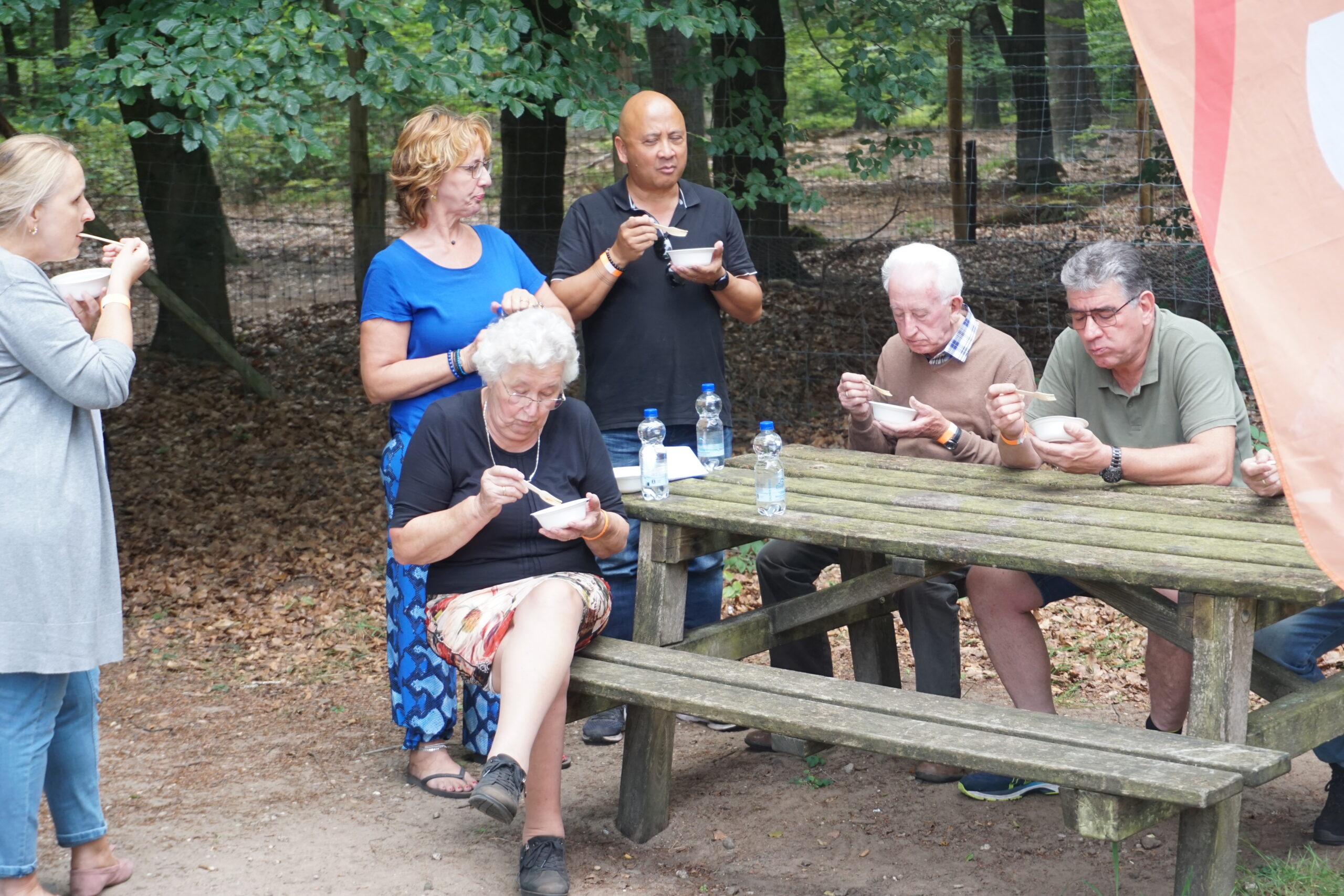 Eenmaal bij het dorpshuis stond Grietje Waaier klaar met haar zelfgemaakte Tiramisu en een bakje koffie. Deze viel bijzonder in de smaak bij iedereen.