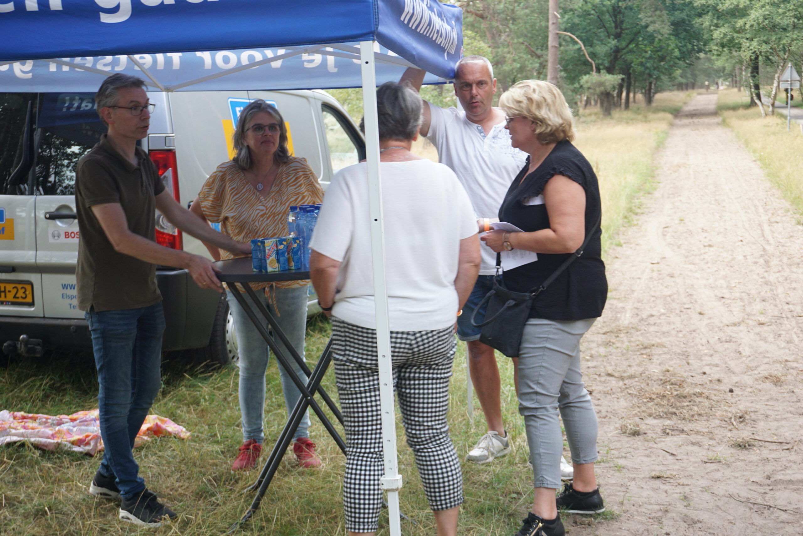 De start was bij het dorpshuis, richting Elspeet, alwaar men bij bakkerij Schreuder al het eerste hapje kreeg voorgeschoteld, een heerlijk saucijzenbroodje om een goede bodem te leggen. Dit was ook nodig, want men moest door de bossen naar Elspeet, helaas had de bosbeheerder net de paden geschoven, waardoor sommige stukken wandelend afgelegd moesten worden. Maar al snel kwam men bij de tweede stop, verzorgd door supermarkt COOP. Een heerlijke pastasalade om weer op krachten te komen.