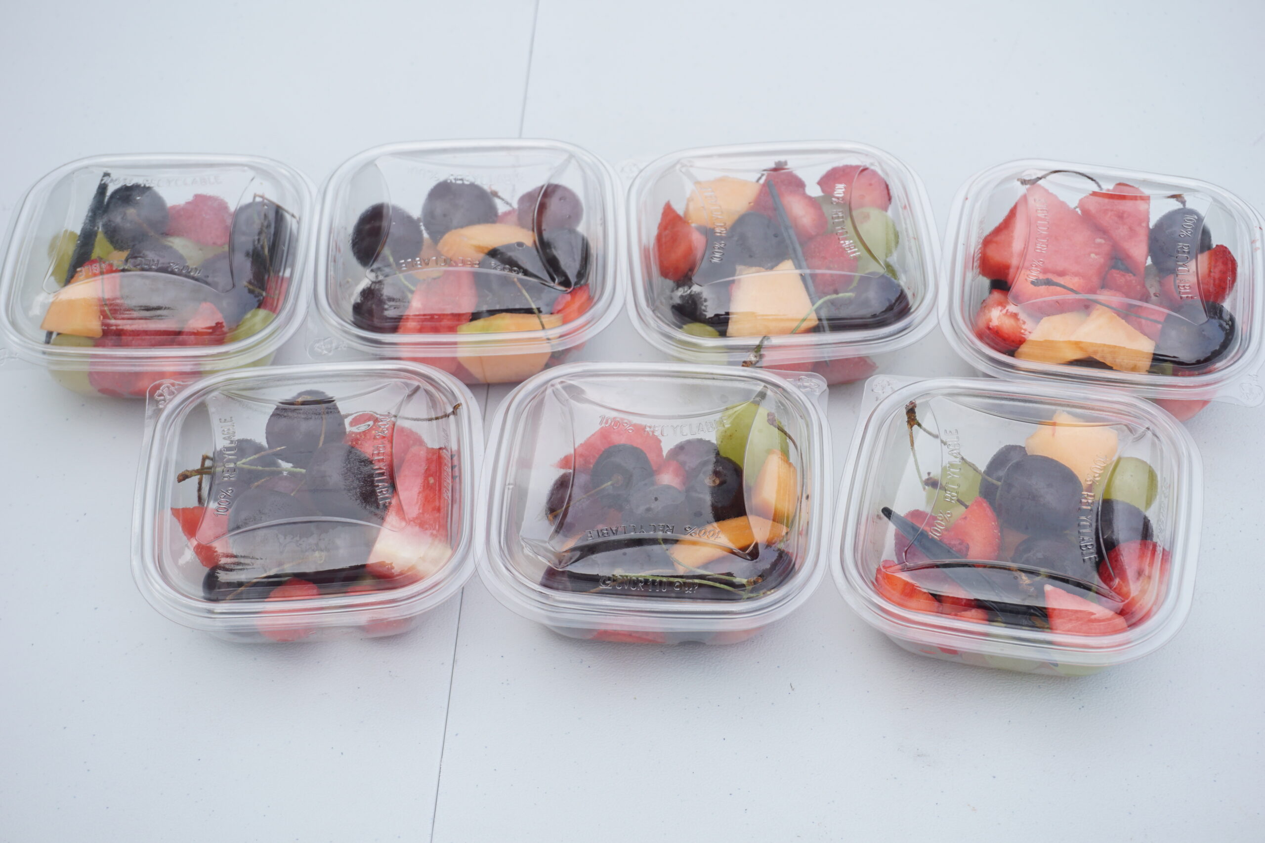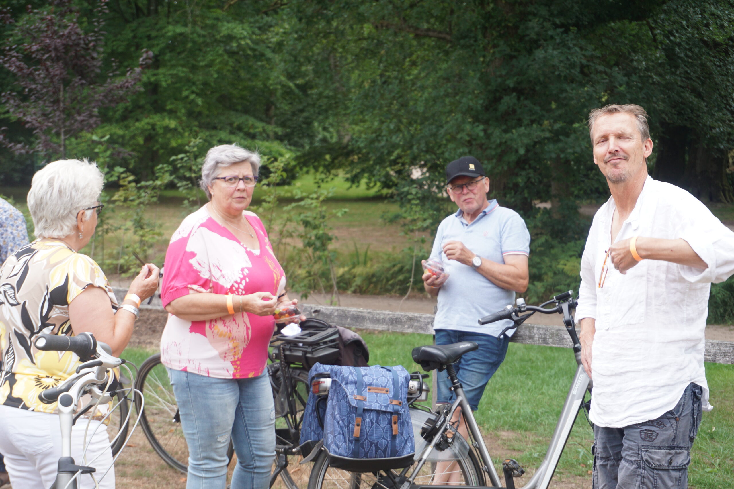 Ondertussen fietsen we alweer richting Staverden, waar we, op de parkeerplaats bij het kasteel een heerlijk bakje vers fruit aangeboden kregen door Arjan Klarenbeek, groente en fruit. Met zoveel gezonde vitamines binnen was het laatste stukje nog maar een peuleschil.