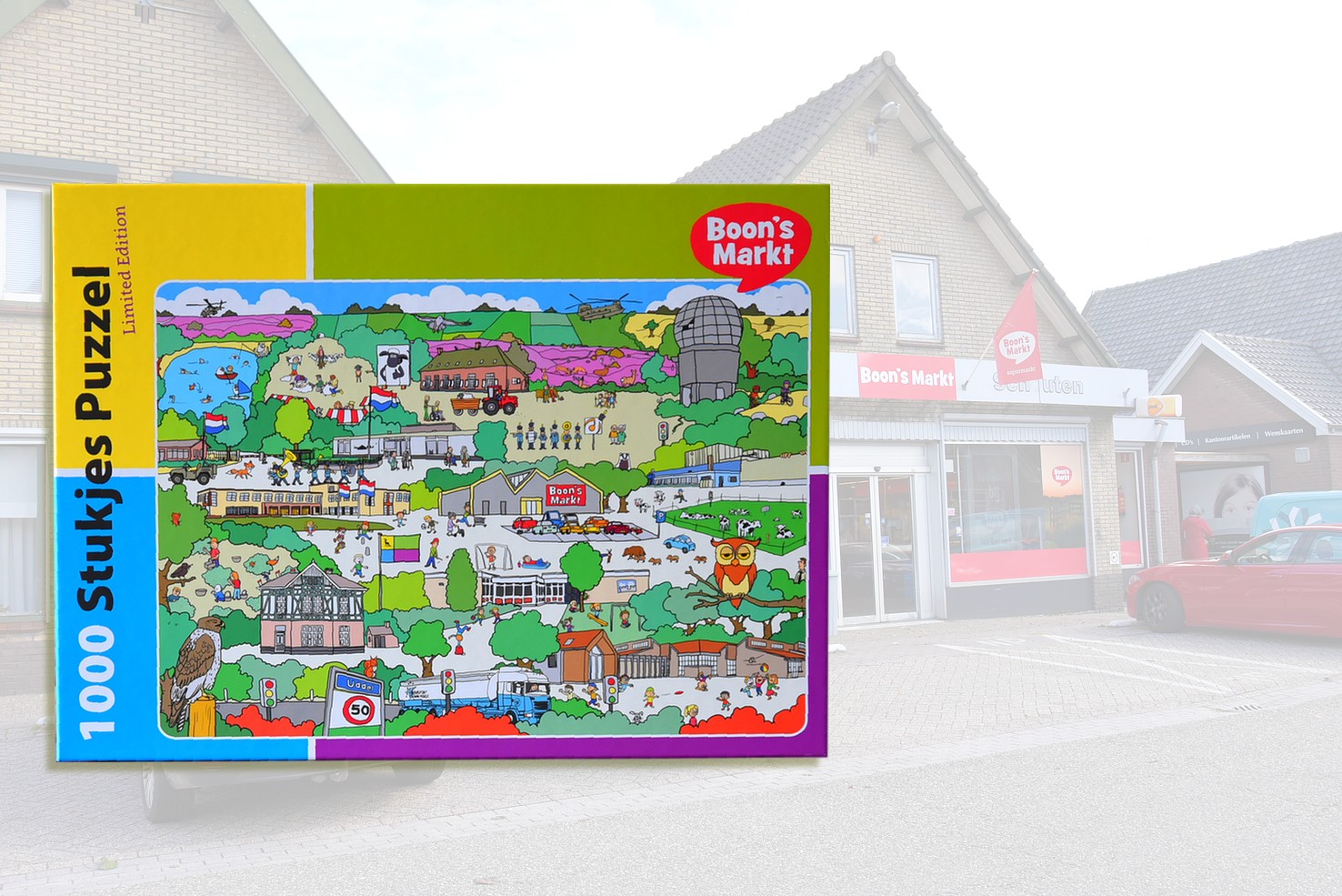 UDDEL – Maandag 18 september beginnen ze bij Boon’s Markt Uddel met een prachtige actie voor hun klanten. Er kan gespaard worden voor ‘Trots op Uddel puzzel’. De puzzel bestaat uit 1000 stukjes met afbeeldingen van o.a. scholen, bedrijven, monumentale panden in Uddel, Meerveld en Nieuw Milligen. En wie goed kijkt, hoort! de 90-jarige muziekvereniging Juliana door de puzzel marcheren.