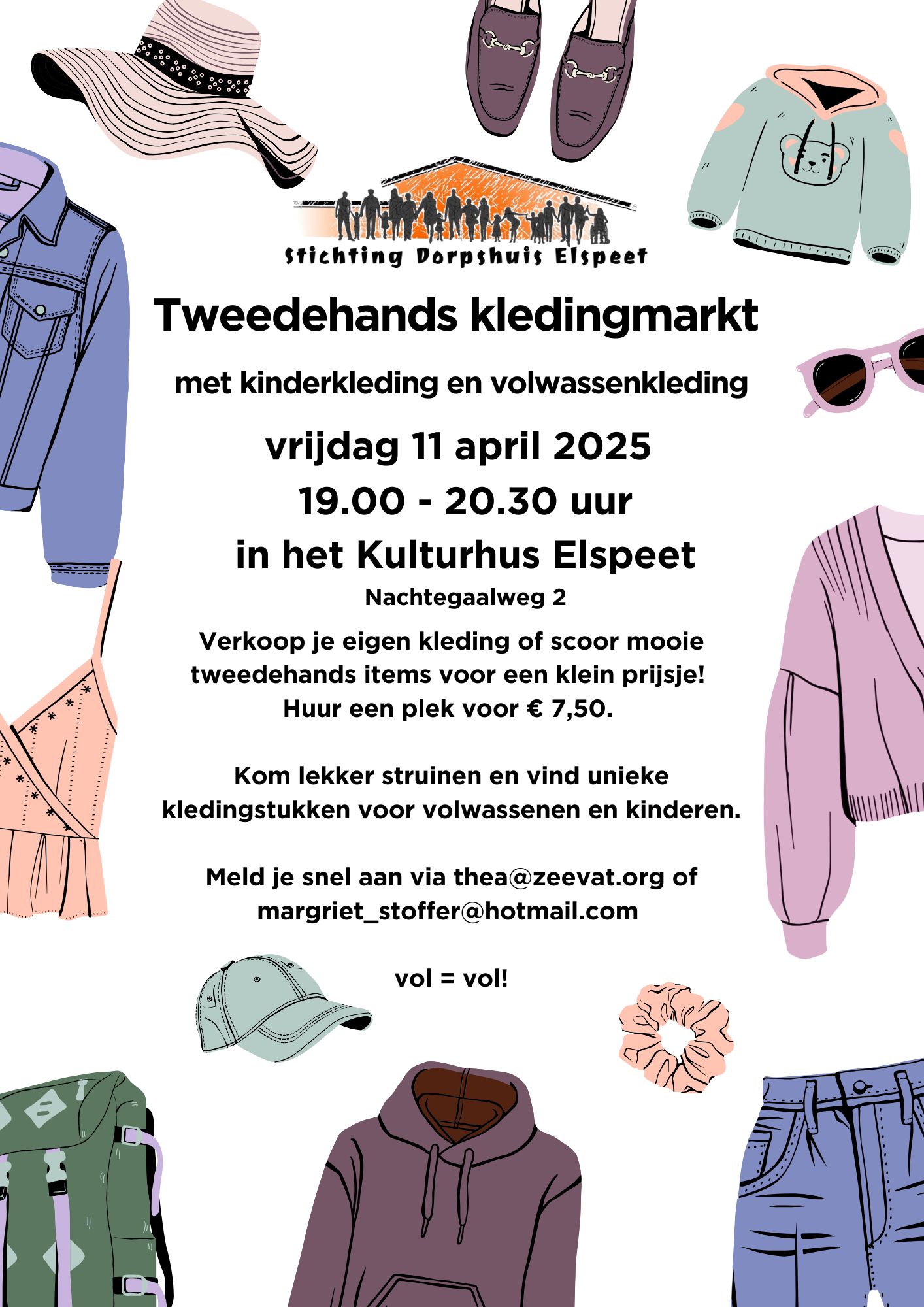 ELSPEET – Op vrijdag 11 april organiseert het Kulturhus in Elspeet een gezellige tweedehands kledingmarkt van 19.00 uur tot 20.30 uur. Een perfecte kans om je kleding een tweede leven te geven én om mooie koopjes te scoren!