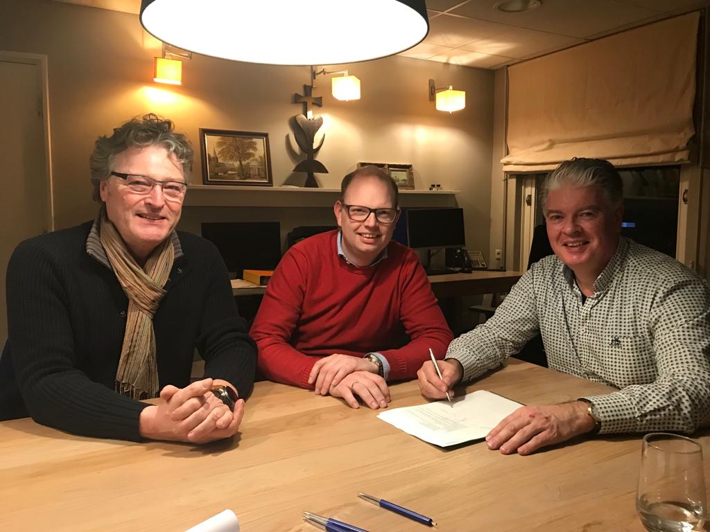 UDDEL – Woensdag 15 februari 2023 tekenden Egbert-Jan van Bel, Johan Pap en Kees Zwaan ten kantore van notariaat Ridderhof & (Jan) Stelwagen te Vaassen de statuten van de (energie)coöperatie Uddel Energiek U.A. (zie foto). Alle mensen die in het aanlooptraject hun steen(tje) hebben bijgedragen en zeker de initiatiefnemers Uddel Onderneemt en Uddels Belang: hartelijk dank!