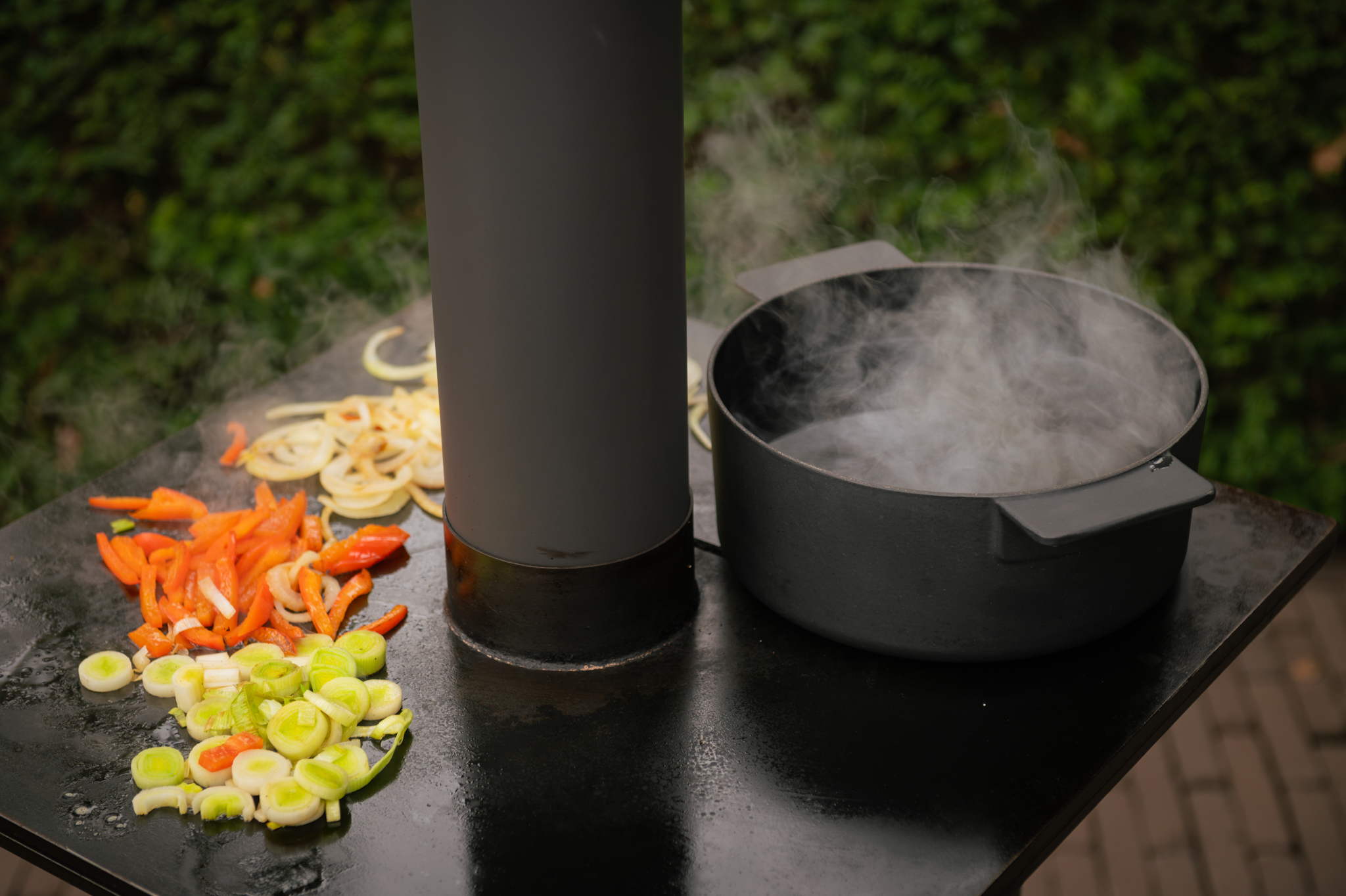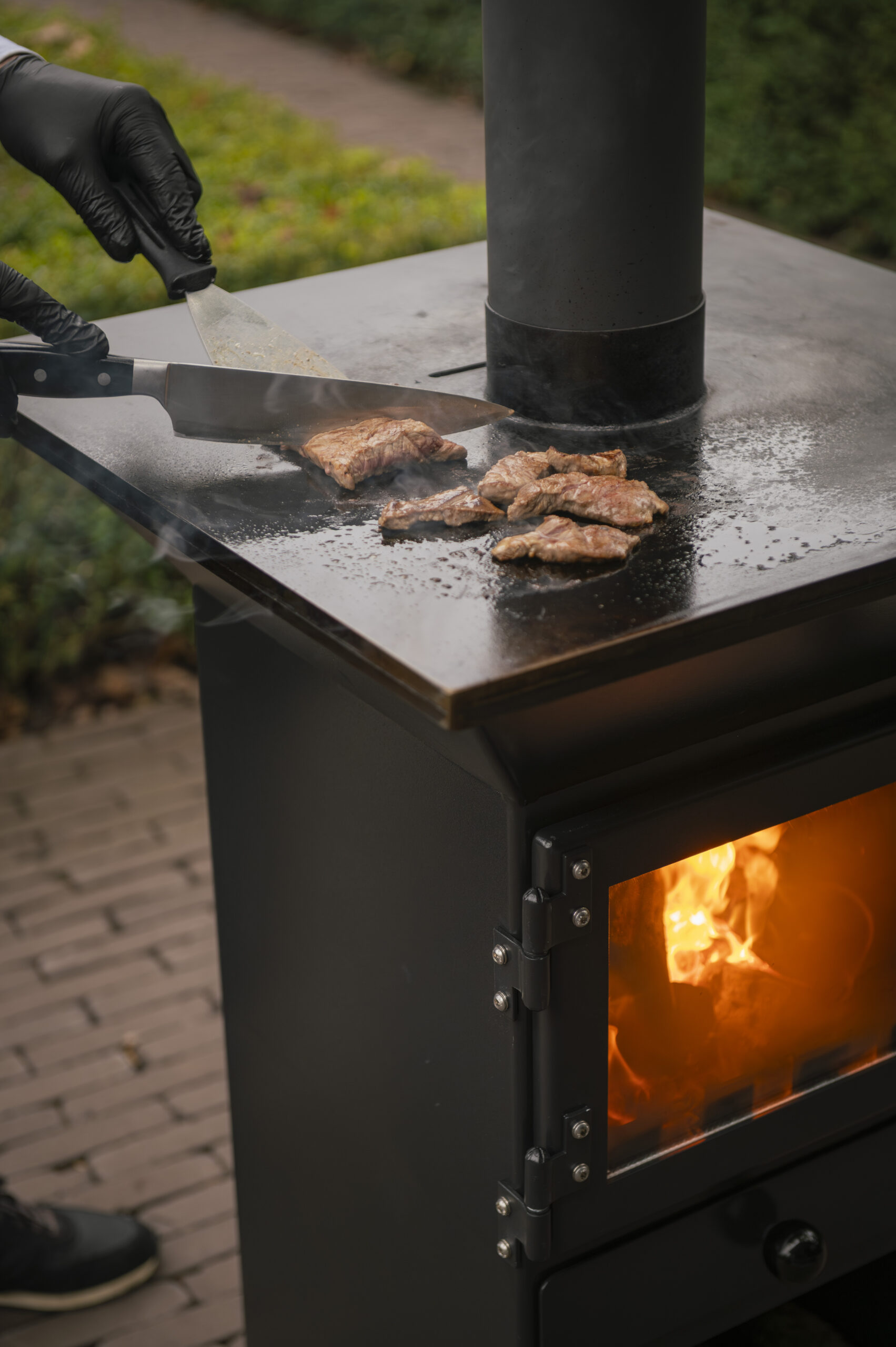 De Qstove is een handgemaakte buitenhaard met een unieke extra functie: een riante bakplaat om te bakken en te koken. Je kunt heerlijke gerechten maken en hebt tegelijkertijd de warmte van een kachel. Dat maakt de Qstove ook uitermate geschikt voor een sfeervolle winteravond.