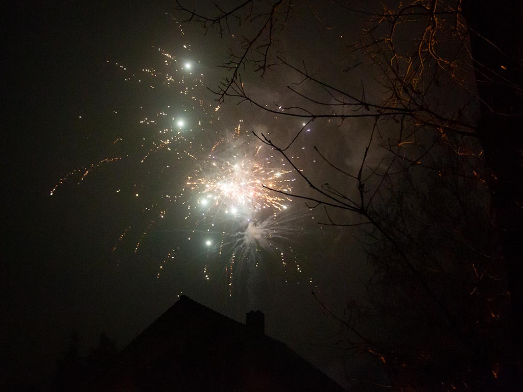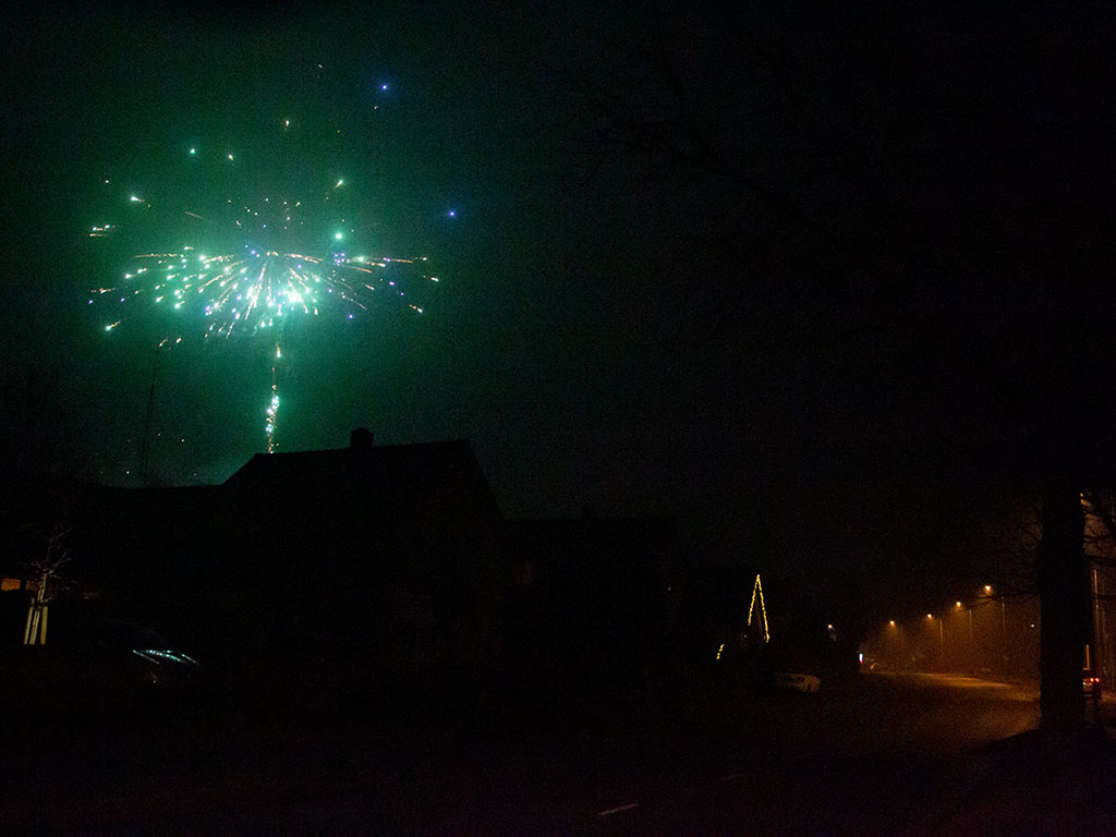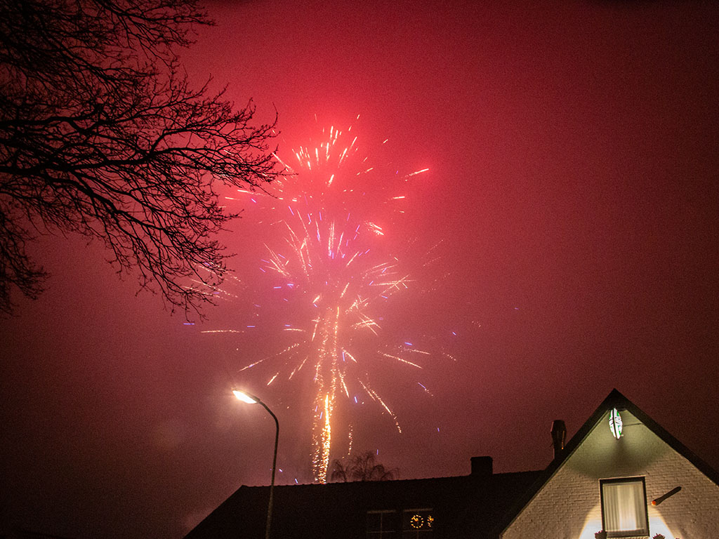 UDDEL – Ondanks het vuurwerkverbod was er in Uddel rond 12 uur middernacht nog genoeg vuurwerk te zien. Veel mensen gingen even de straat op om elkaar een goed nieuwjaar te wensen.