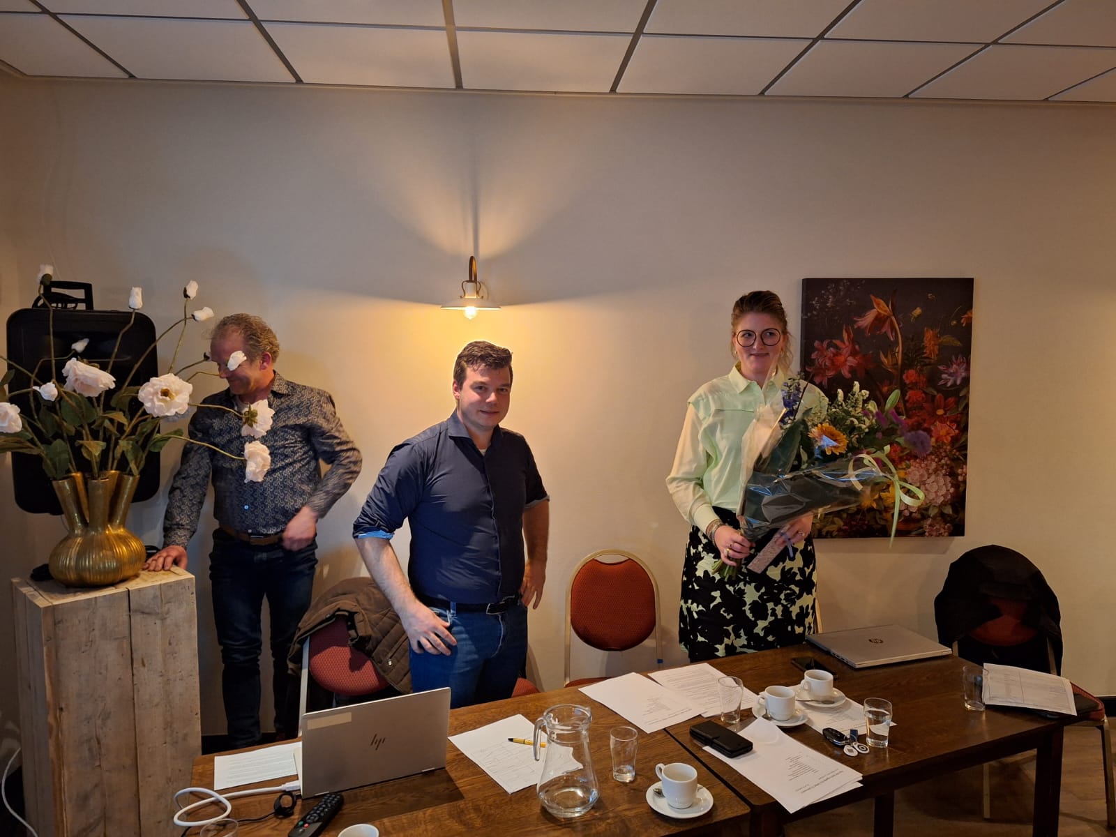 Tijdens de vergadering werd afscheid genomen van Anne Kok (La Jumelle), die zich jarenlang heeft ingezet voor de vereniging en winkeliers, met name op organisatorisch gebied. Namens de vereniging werd haar een mooie bos bloemen overhandigt en een waardebon. Voorzitter Herman van Dalfsen bedankte haar voor de jarenlange inzet.