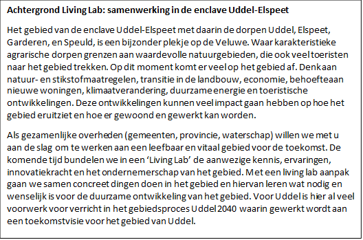 UDDEL/ ELSPEET – Het Living Lab heeft op dinsdag avond 19 april weer een bijeenkomst. Ze nodigen graag iedereen uit op dinsdagavond 19 april van 19.30-21.30 (inloop va 19.00). Ditmaal organiseren ze de avond in Kulturhus Elspeet, Nachtegaalweg 2, 8075 AX Elspeet.