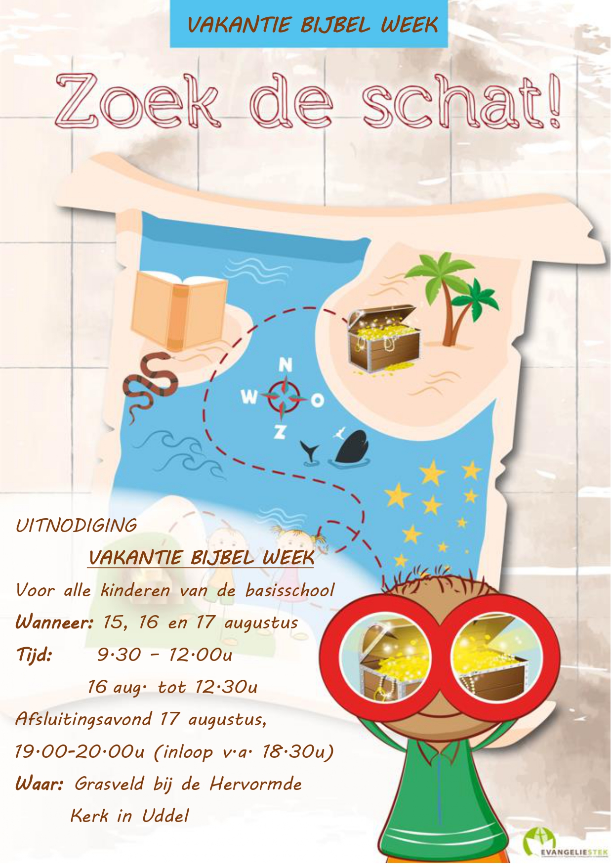 UDDEL – Dit jaar hopen we weer een leuke Vakantie Bijbel Week te houden. We vinden het heel leuk als jij erbij bent! Neem gerust je vriendjes en vriendinnetjes mee.