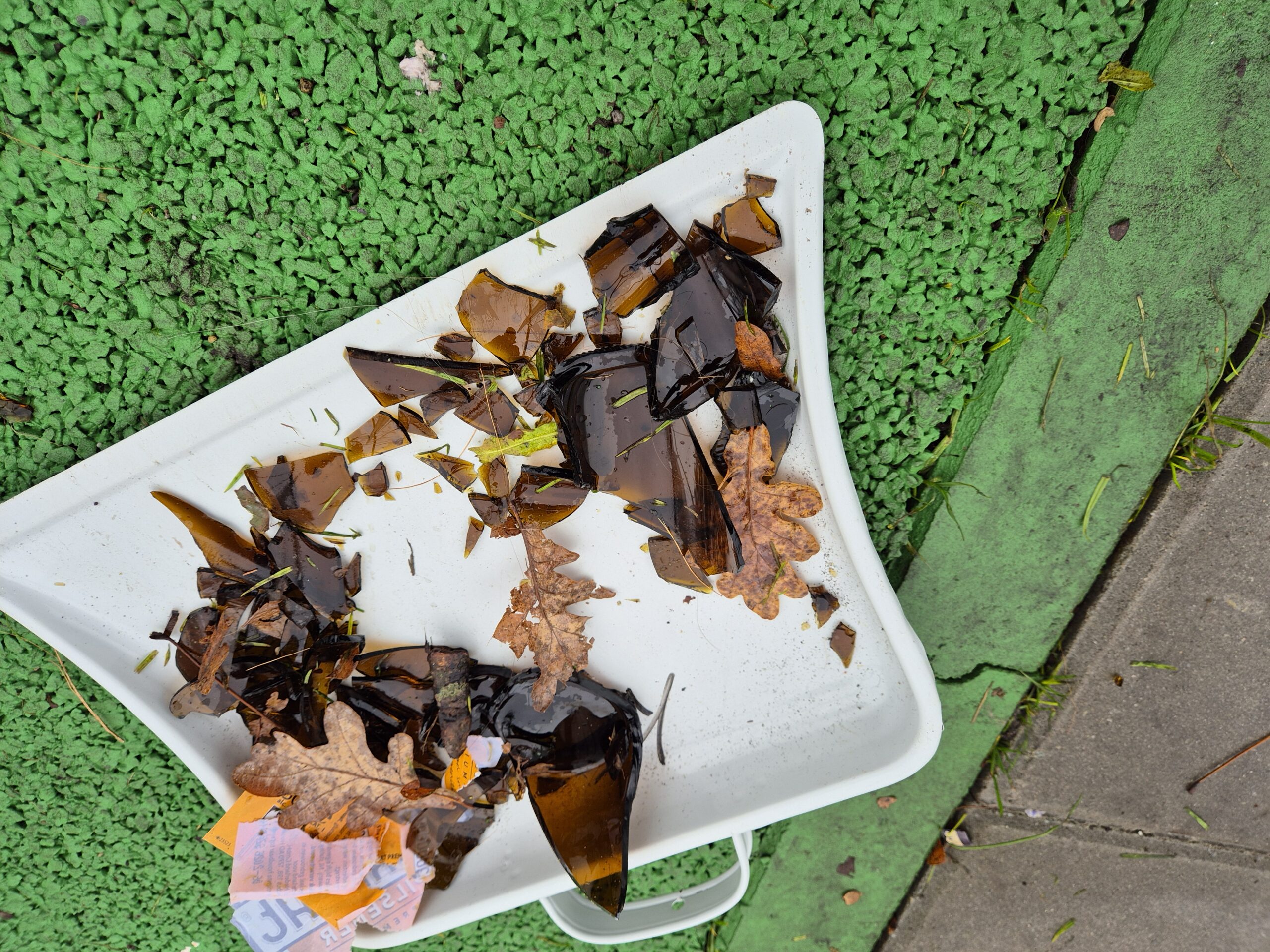 Ook lagen er vorige week kapotte bierflesjes in de kooi. Dit kan uiteraard niet de bedoeling zijn!