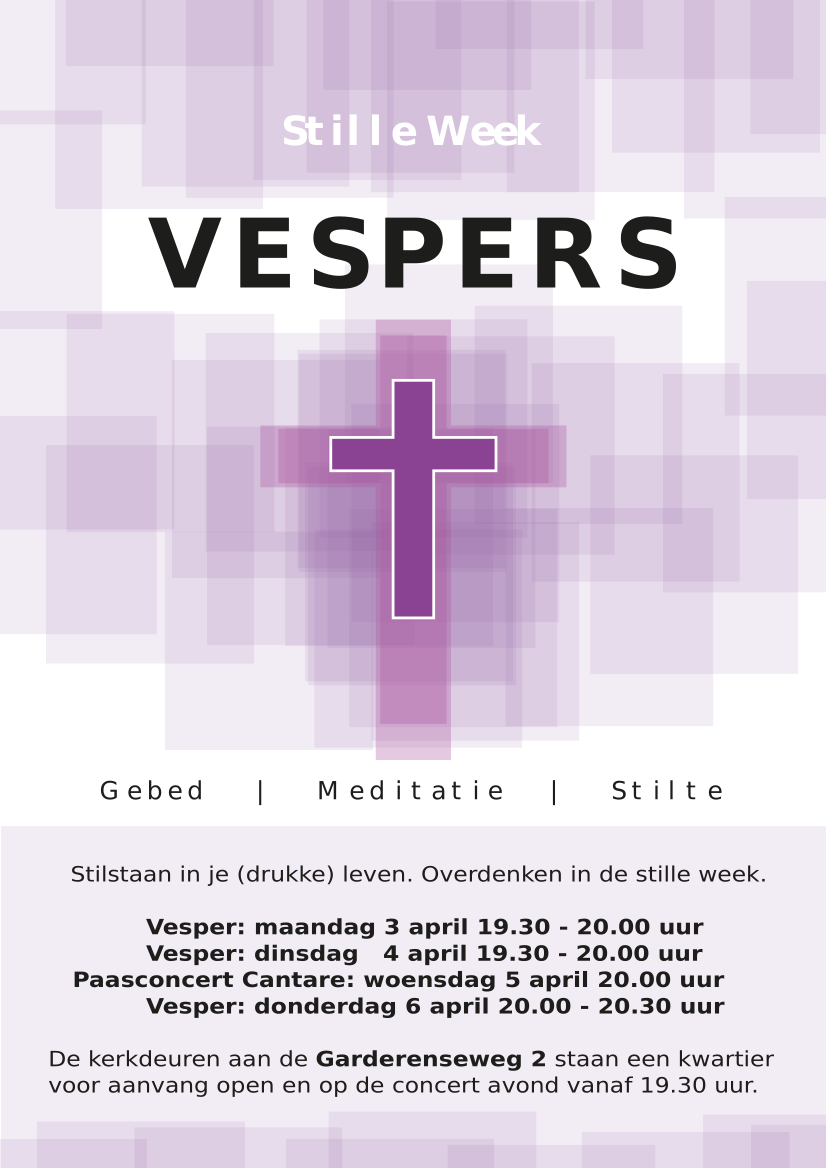 UDDEL – In deze stille week voor Pasen worden er sinds een aantal jaar Vespers in de Hervormde Kerk aan de Garderenseweg 2 gehouden. Tijdens een Vesper wordt er een half uurtje stil gestaan bij de lijdensweg van Jezus. Tevens is er op woensdag 5 april een paasconcert van het koor Cantare in de kerk.