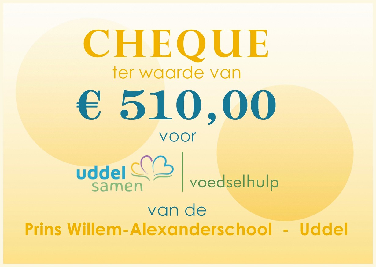 Kinderen van de Prins Willem-Alexander hebben een cheque met daarop dit prachtige bedrag overhandigd aan Jan Schreuder van de Voedselhulp, waar hij heel blij mee is. Het onderwijzend personeel en de kinderen werden heel hartelijk bedankt voor deze prachtig bijdrage.
