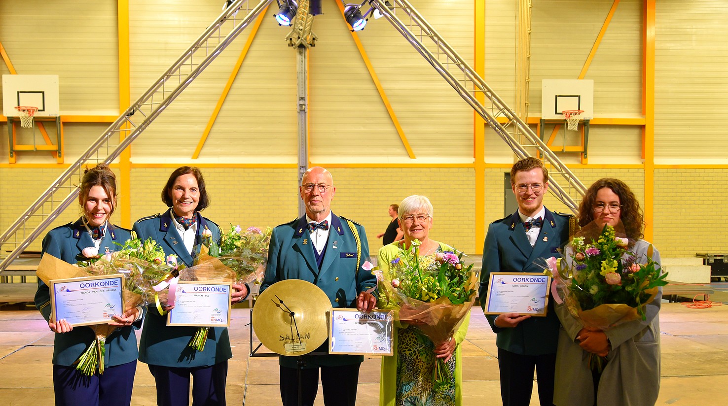 Als laatste, maar zeker niet de minste jubilaris, werd Peter Bronkhorst gehuldigd voor zijn 60-jarig lidmaatschap – een uniek gebeuren in de huidige tijd, waarin mensen zich steeds minder lang binden aan een vereniging. Wat hij allemaal heeft gedaan, en nog steeds doet voor Juliana, is teveel om op te noemen. Spelend lid op de grote trom bij de fanfare, maar ook jarenlang bij de drumband. We kunnen ook bijna geen repetitie of optreden bedenken waar hij niet bij geweest is. Verder bestuurslid, lid van verschillende actiecommissies (zoals de oliebollenactie en papieractie), betrokken bij het onderhoud van instrumenten en zo zijn er nog veel meer dingen te noemen waar Peter aan meegeholpen heeft. Ook het commissariaat van Peeties Papierhandel is tot op heden actueel. Een lid als Peter is goud waard voor de vereniging. Hij ontving van Juliana de verenigingsspeld, en een bekken, waarvan een klok is gemaakt. Van de KNFM ontving hij de vergulde speld met twee zirkonia’s. Als afsluiting van de huldigingen werd de toepasselijke mars Aan mijn Vrienden gespeeld.