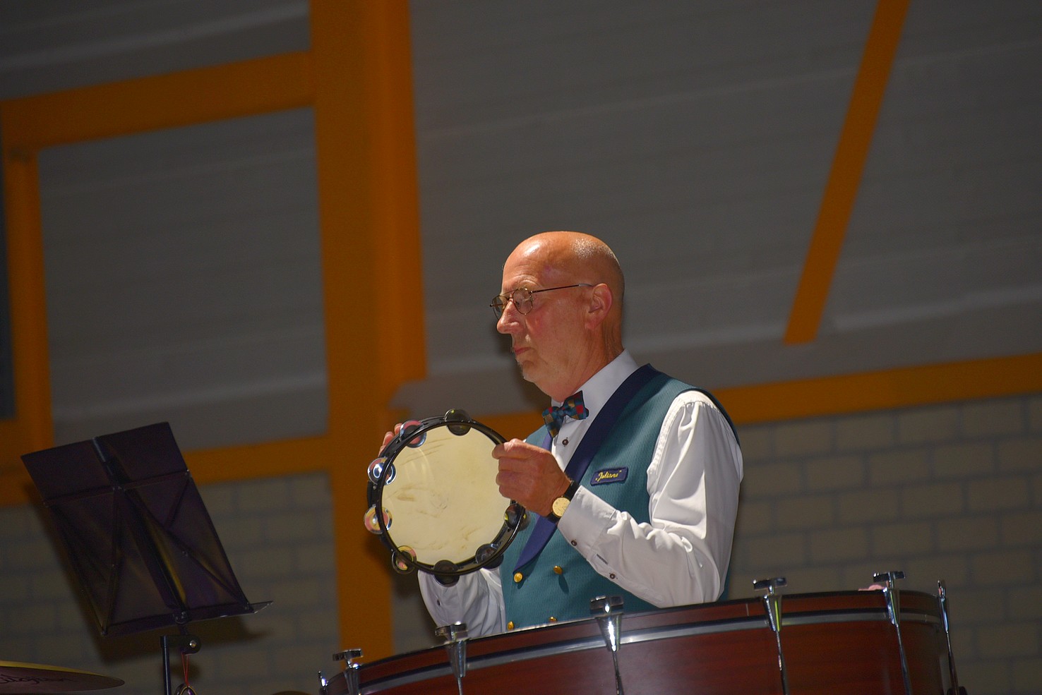 Hierna kwam de drumband onder leiding van Eddy Visser op het podium. Na jarenlange afwezigheid heeft Juliana na het reünieconcert weer een drumband. Een aantal fanatieke oud-leden heeft de draad weer opgepakt en is nu tweewekelijks fanatiek aan het repeteren. Dat ze het nog niet verleerd zijn, lieten ze horen met de werken: Binario, Marching Ludovic en Printers Pride. Prachtige nummers die door het talrijke publiek zeer werden gewaardeerd.
