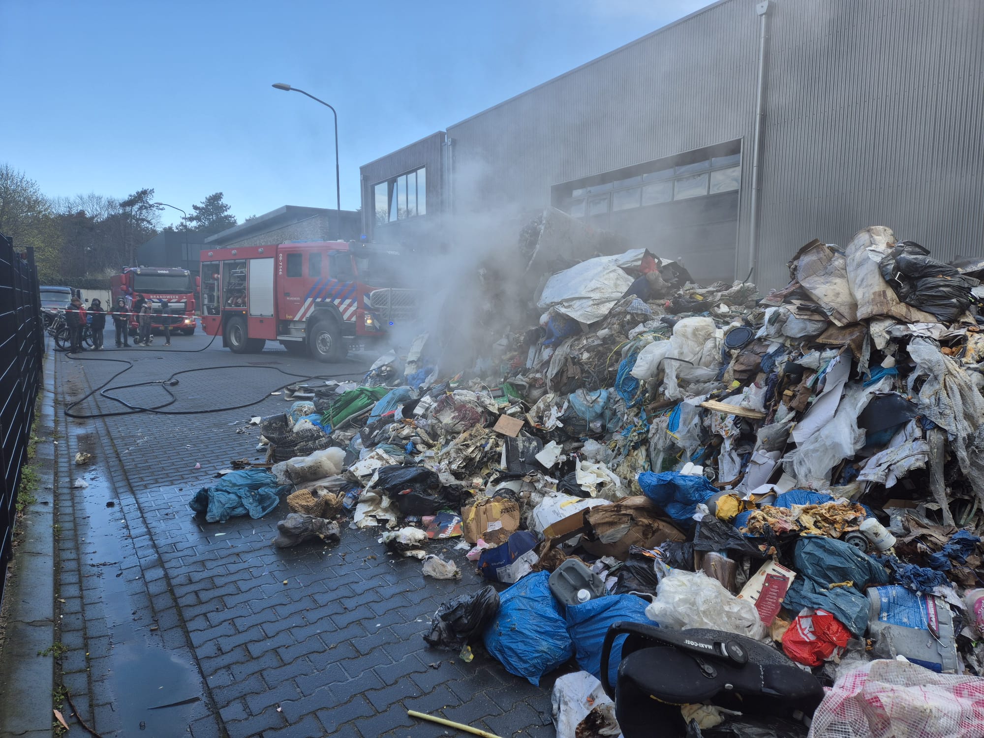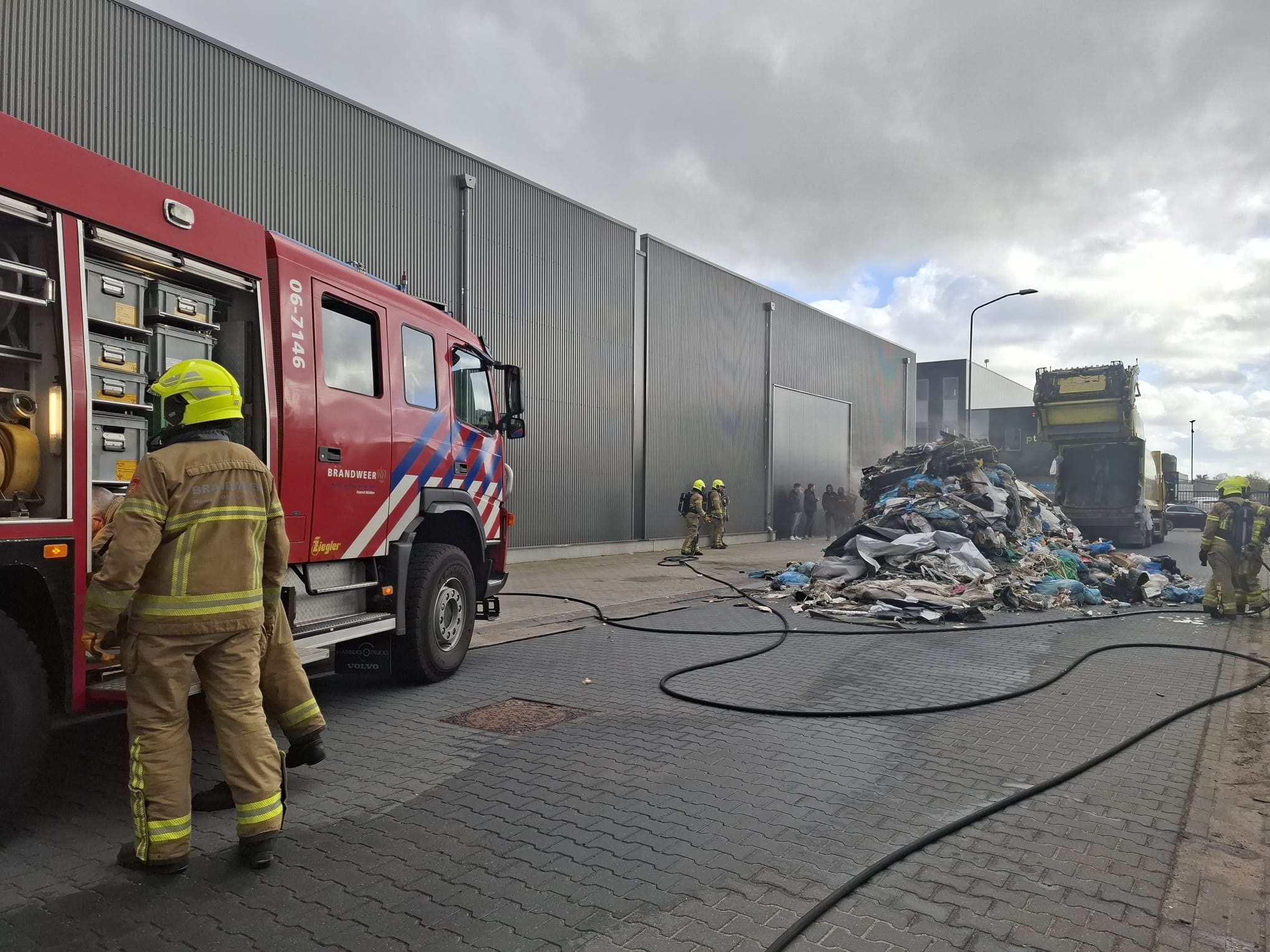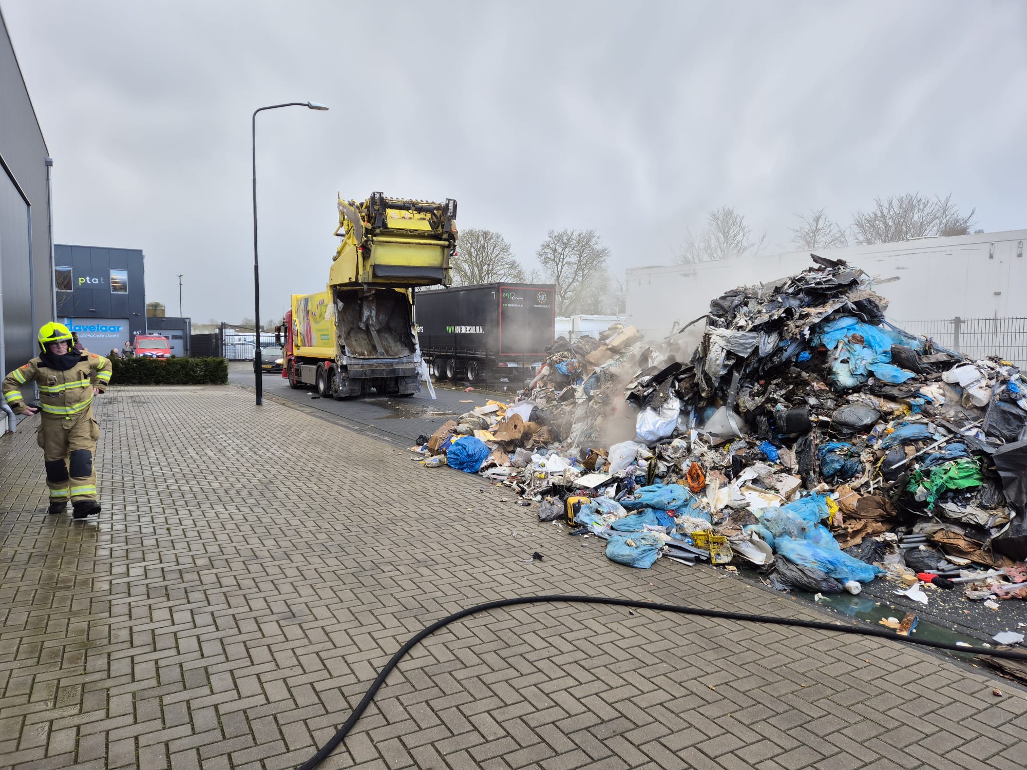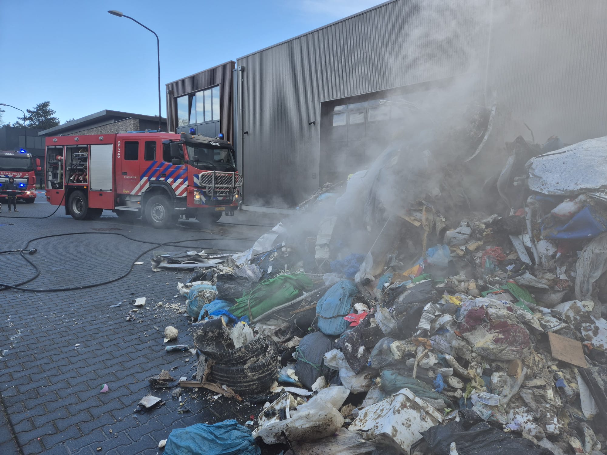 UDDEL – Donderdagmiddag om 15.45 worden de tankautospuit en de waterwagen van Brandweer Uddel opgepiept voor een vrachtwagenbrand op het bedrijventerrein aan de Elspeterweg. De vracht van een vuilniswagen had vlam gevat en zorgde voor flinke rookontwikkeling. De chauffeur heeft de lading gelost op straat zodat de brand geblust kon worden. Een kraan komt de lading uit elkaar trekken zodat er verder afgeblust kan worden.