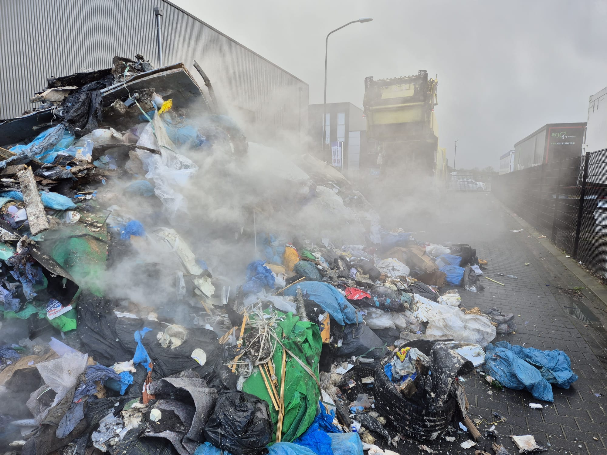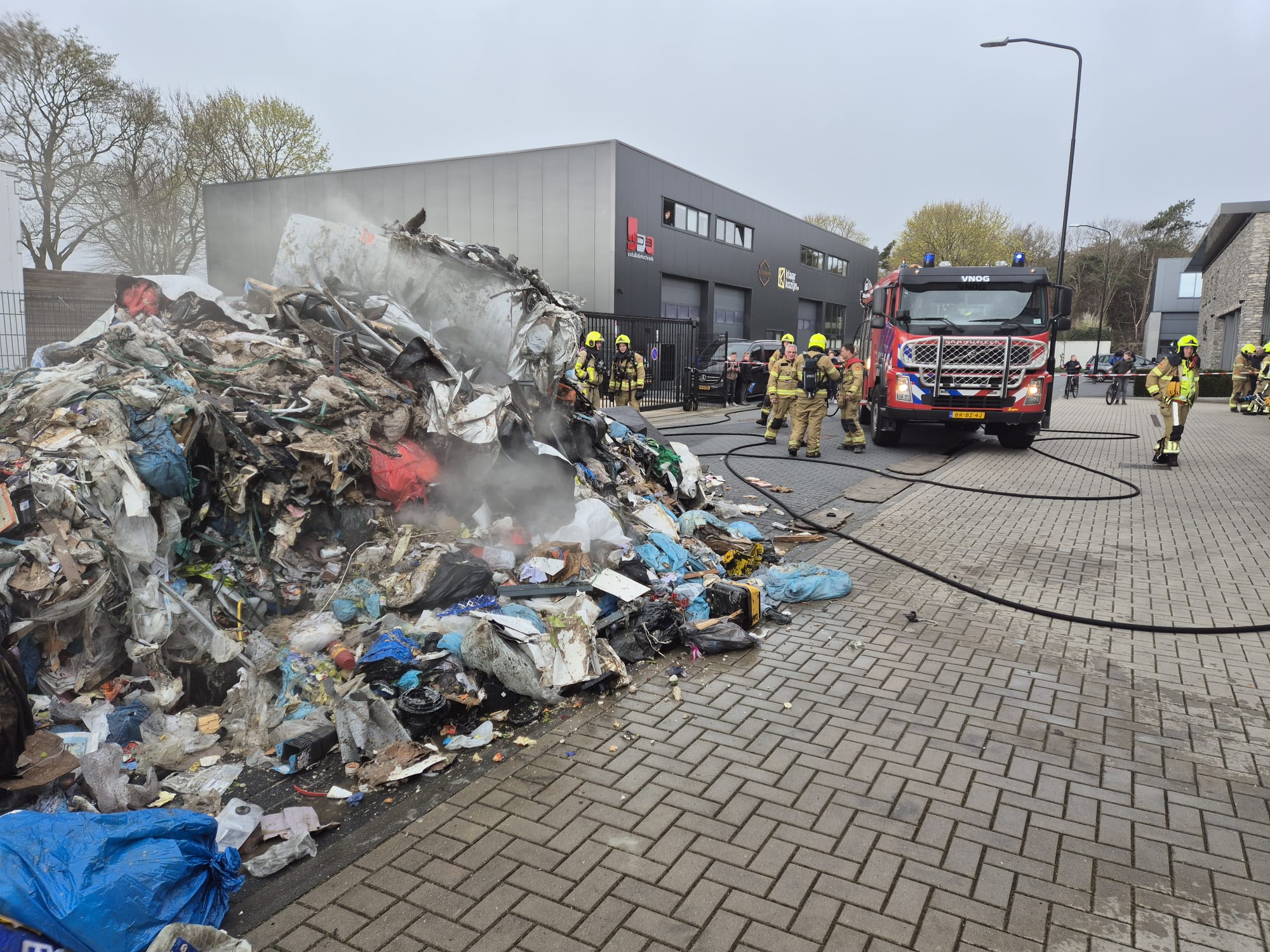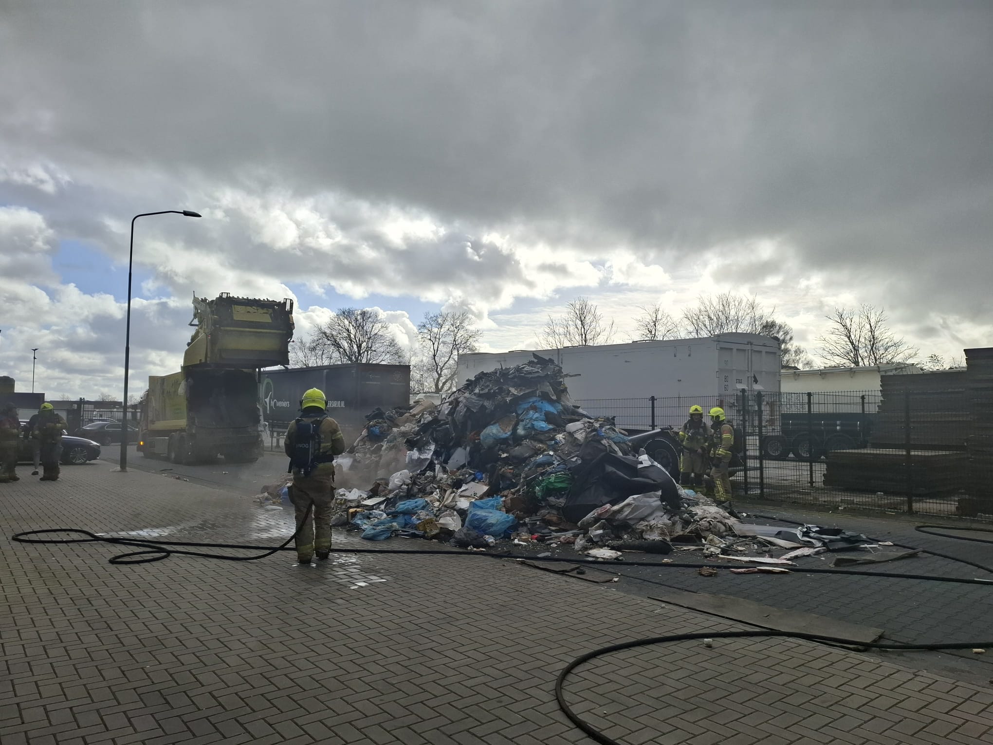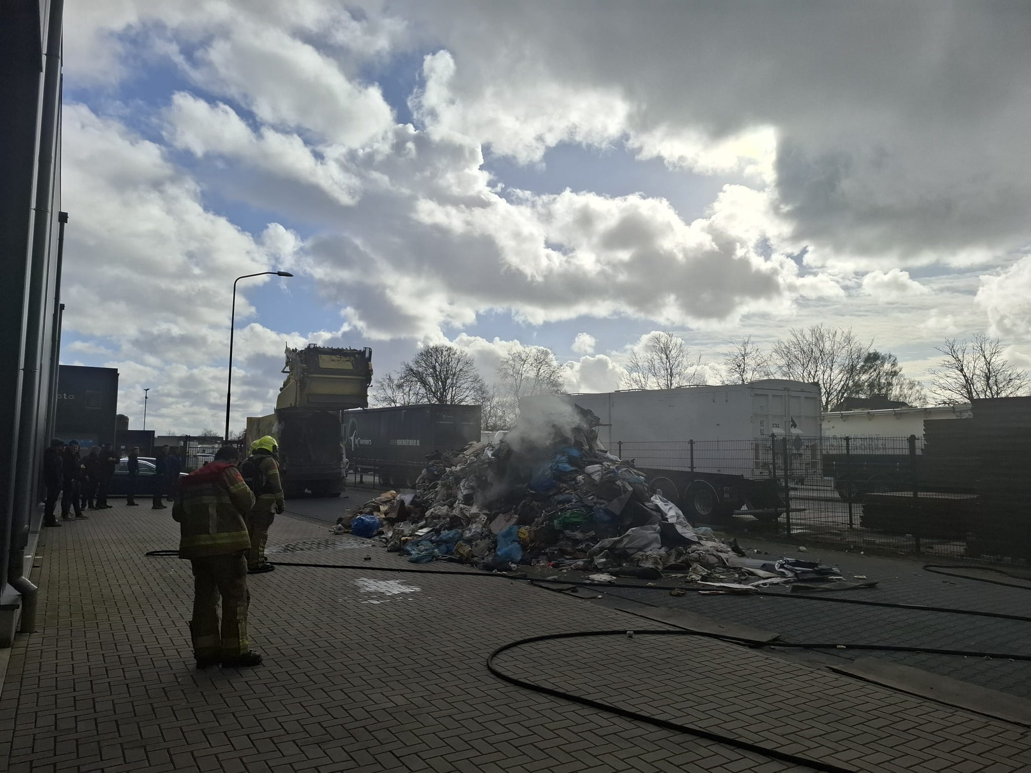UDDEL – Donderdagmiddag om 15.45 worden de tankautospuit en de waterwagen van Brandweer Uddel opgepiept voor een vrachtwagenbrand op het bedrijventerrein aan de Elspeterweg. De vracht van een vuilniswagen had vlam gevat en zorgde voor flinke rookontwikkeling. De chauffeur heeft de lading gelost op straat zodat de brand geblust kon worden. Een kraan komt de lading uit elkaar trekken zodat er verder afgeblust kan worden.
