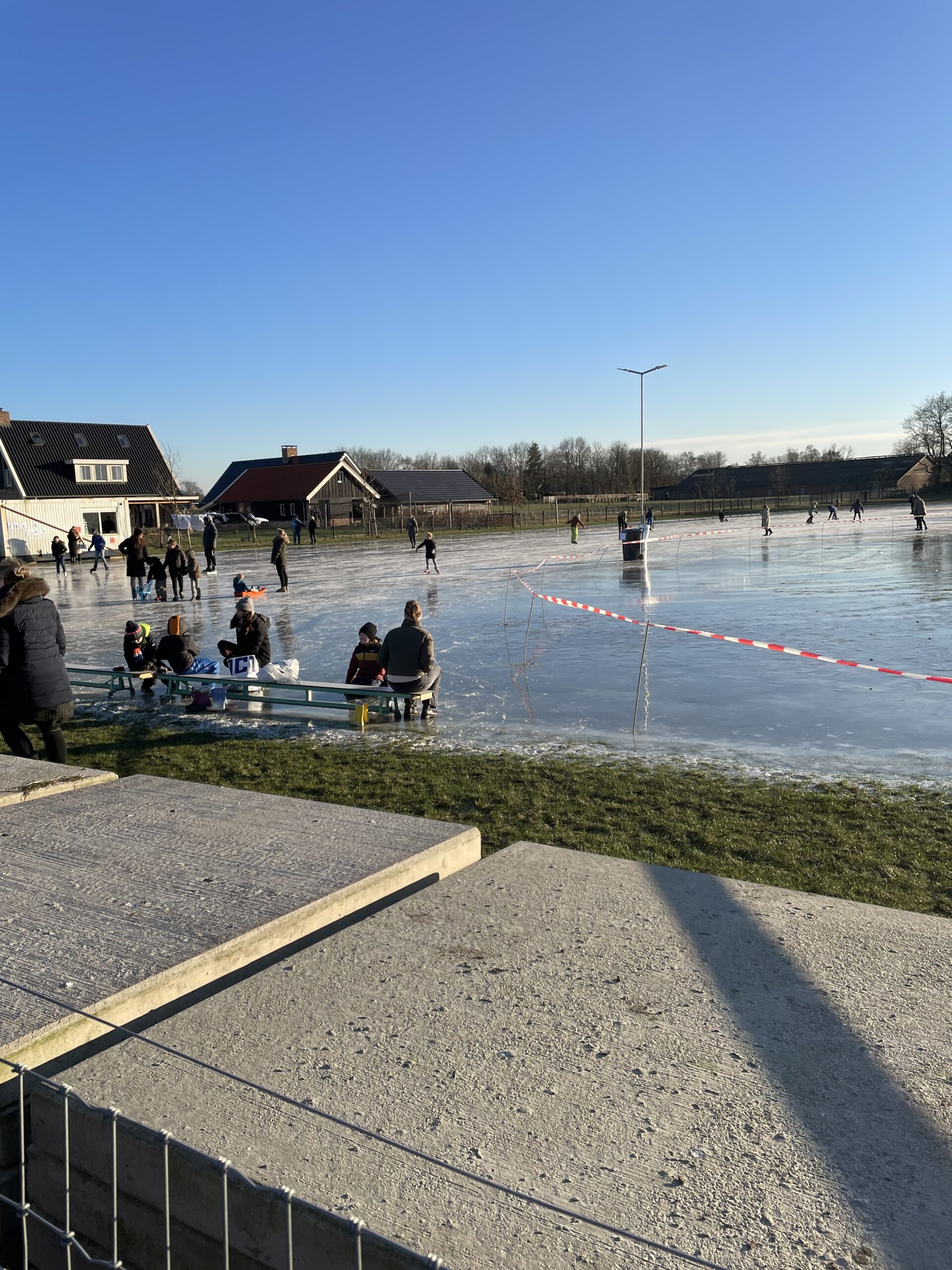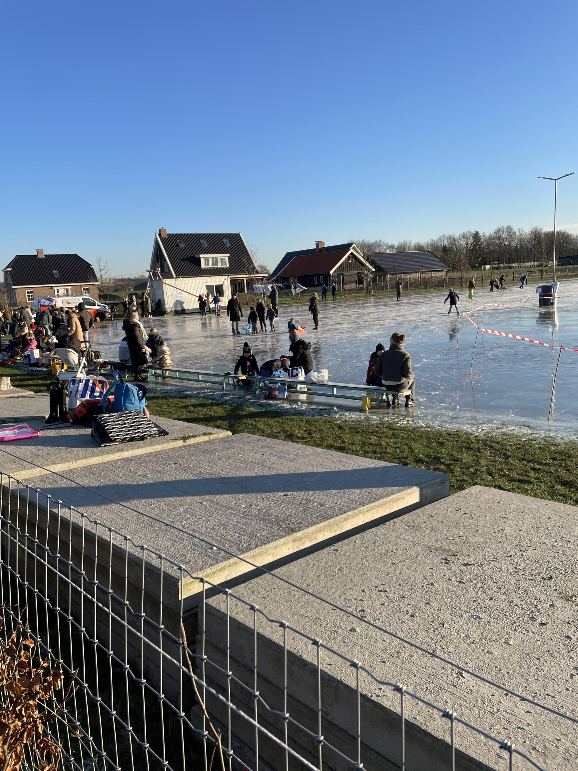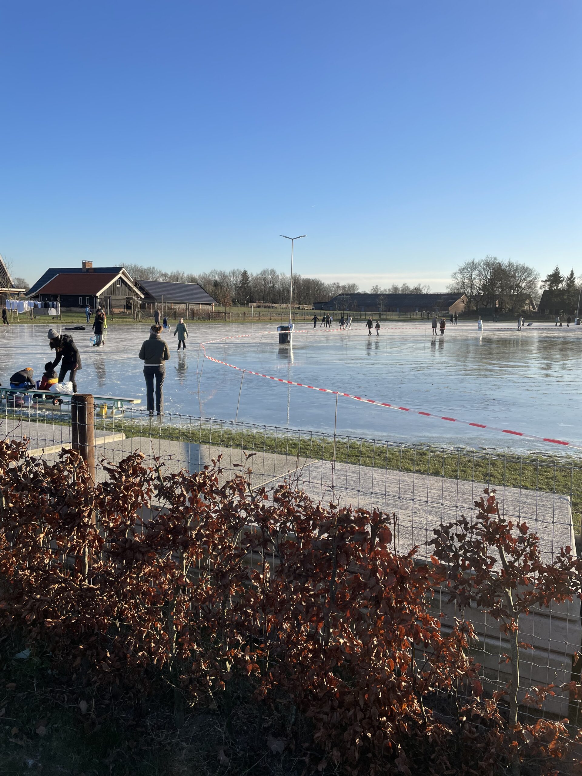 UDDEL – Hoelang Koning Winter zal regeren weten we niet, maar bij de Familie de Bruin kan geschaatst worden! Aan de Staverhul is het een gezellig drukte van krioelende mensen. Jong en oud heeft de ijzers ondergebonden om heerlijk te genieten, en een paar slagen op het ijs te maken. Wat een oud Hollands tafereel bijna. Prachtig om te zien en hoewel de wind echt koud is kan dat de pret niet drukken! Dit is op en top genieten.