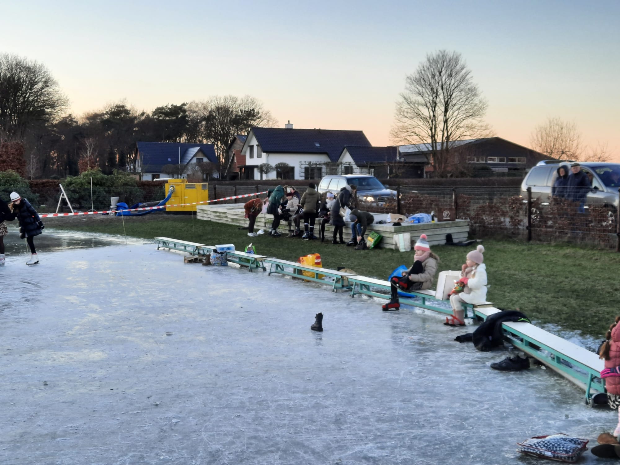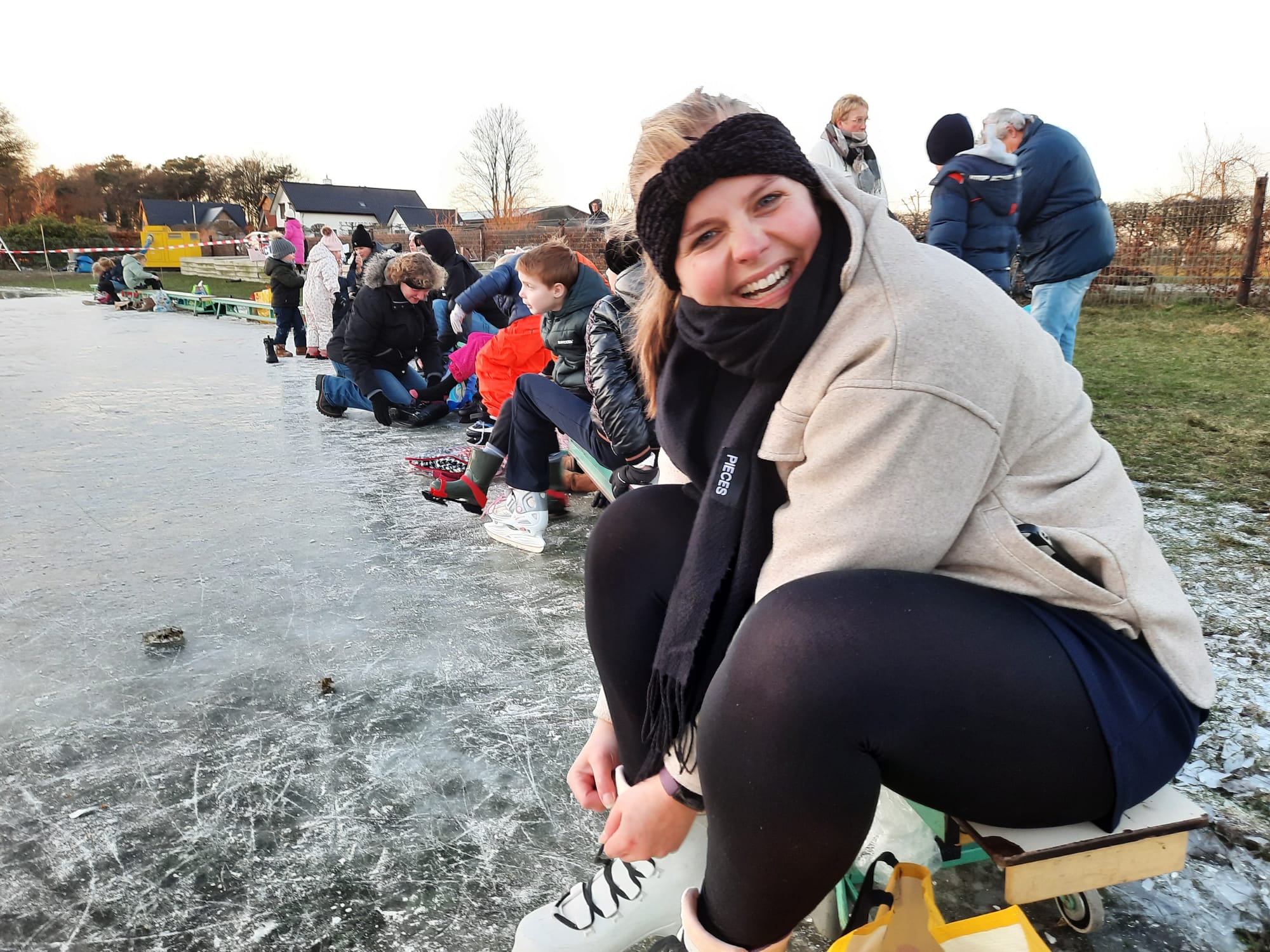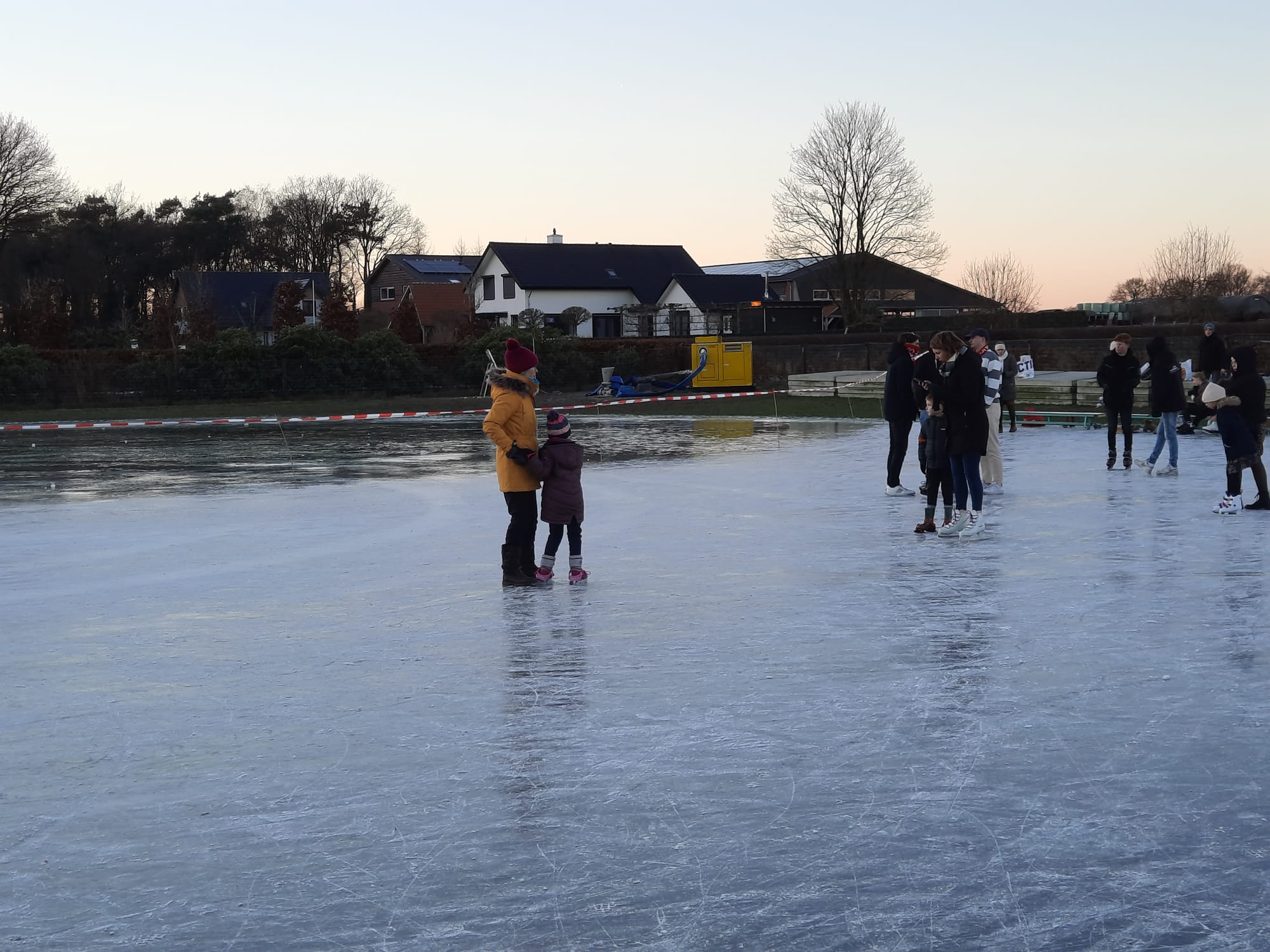 UDDEL – Hoelang Koning Winter zal regeren weten we niet, maar bij de Familie de Bruin kan geschaatst worden! Aan de Staverhul is het een gezellig drukte van krioelende mensen. Jong en oud heeft de ijzers ondergebonden om heerlijk te genieten, en een paar slagen op het ijs te maken. Wat een oud Hollands tafereel bijna. Prachtig om te zien en hoewel de wind echt koud is kan dat de pret niet drukken! Dit is op en top genieten.